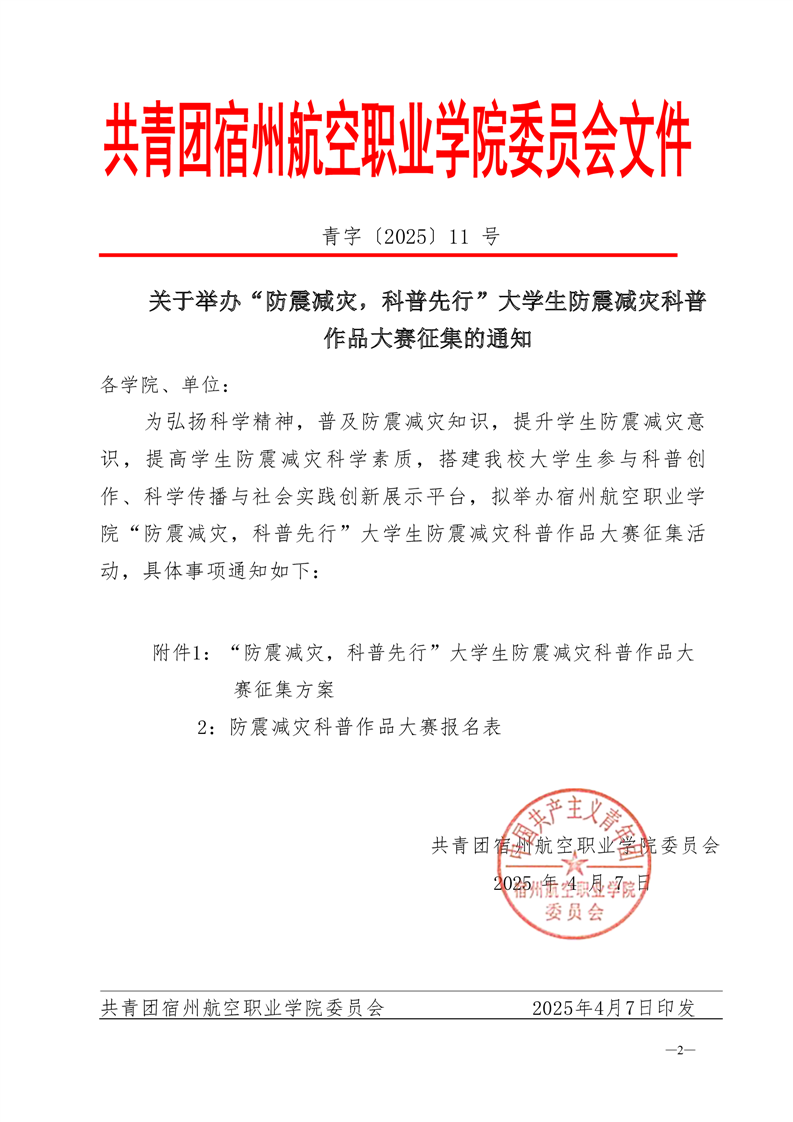 青字〔2025〕11 号关于举办“防震减灾,科普先行”大学生防震减灾科普