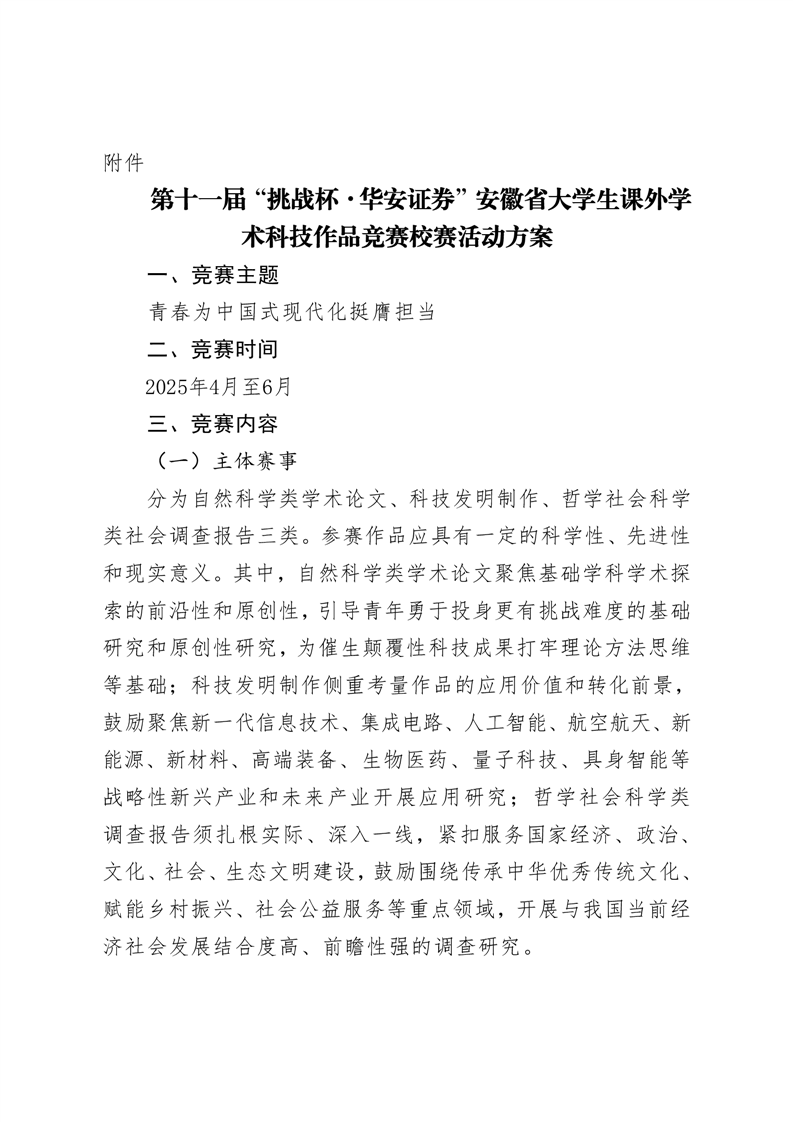 青字〔2025〕13号关于举办第十一届“挑战杯·华安证券”安徽省大学生课外学术科技作品竞赛校赛的通知