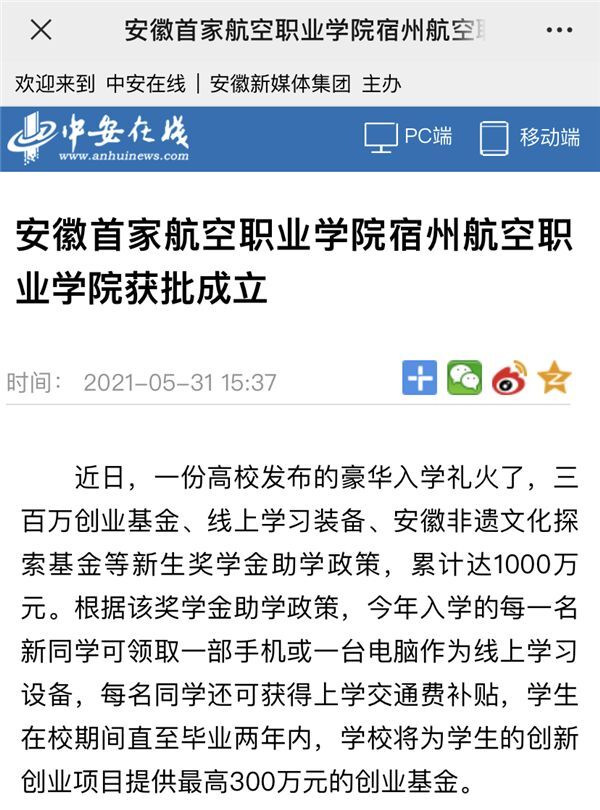 媒体聚焦🔅💐:安徽省首家航空职业学院—彩神Vll学院获批引关注 ……