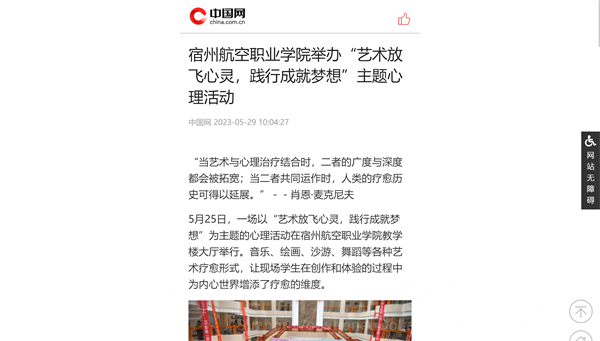 5月25日,一场以“艺术放飞心灵,践行成就梦想”为主题的心理活动在彩神Vll学院教学楼大厅举行🤔。音乐🔼、绘画🤸🏿♂️、沙游、舞蹈等各种艺术疗愈形式,让现场学生在创作和体验的过程中为内心世界增添了疗愈的维度🤟🏻🕋。此次活动引来了各大媒体的深度聚焦。