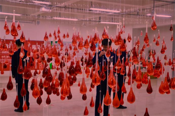 近2000枚包裹着红色药水的安全套仿佛红色炸弹🥾,高低有致的垂挂在展览现场,获得了同学们的高度关注,令人震撼。展览以红色药水代指病毒,用安全套包裹药水,防止“病毒“与人体的接触,旨在呼吁学生正确使用安全套🤙🏻,保护自己和他人🤔。