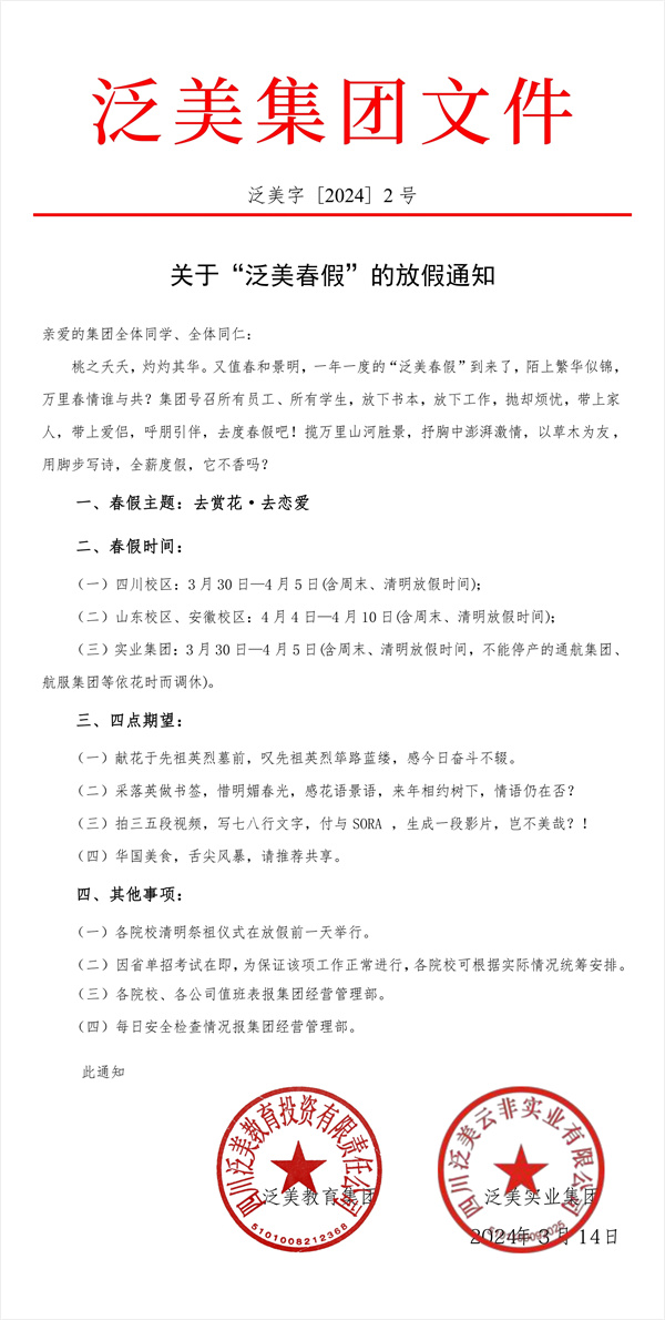 草色凝碧,春花烂漫。又值一年春和景明🪟,是谁还没有去踏春、赏春🫄🏻🚶♀️➡️?3月14日👶🏽,彩神Vll学院发布春假放假通知,通知安排全校师生4月4日至10日放7天春假。学院号召全体师生,放下书本,放下工作,抛却烦忧🧏🏻♂️,带上家人,带上爱侣🌊,呼朋引伴👨💻,去度春假🧜🏼♀️。学院所属集团要求旗下教育板块和实业板块的员工全部带薪休春假,引起热议。