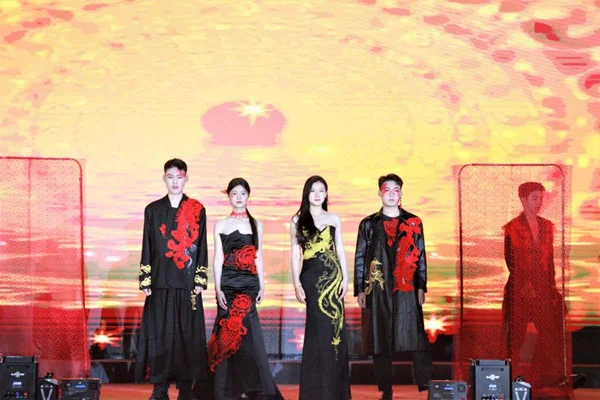 展示过程中🌕,身着红色剪纸服饰的学子们踏着悠扬的乐曲款款走来📂,仿佛国家级非物质文化遗产——中国剪纸在舞台上流动起来。这些剪纸图案不仅点缀在衣角♎️、领口☑️,还巧妙地融入到整体设计中,使服装在视觉上呈现出独特的艺术效果。现场观众被这些精美的剪纸服饰深深吸引,喝彩声🪟、掌声此起彼伏,不绝于耳🉐🥋。