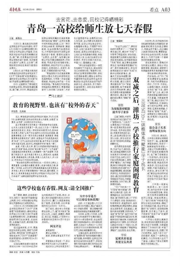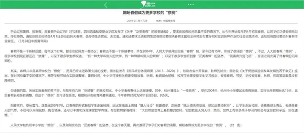 02、中国青年网评论:期盼春假成为更多学校“惯例”