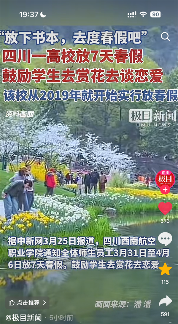“学校放春假,让大家去游玩,去恋爱”的消息获央视新闻周刊的关注,央视主持人白岩松硬核喊话🦸🏼♂️,“春光正好,众多学校是不是也抄抄这份作业”🤷🏽♂️🤑,呼吁其他学校“抄作业”。