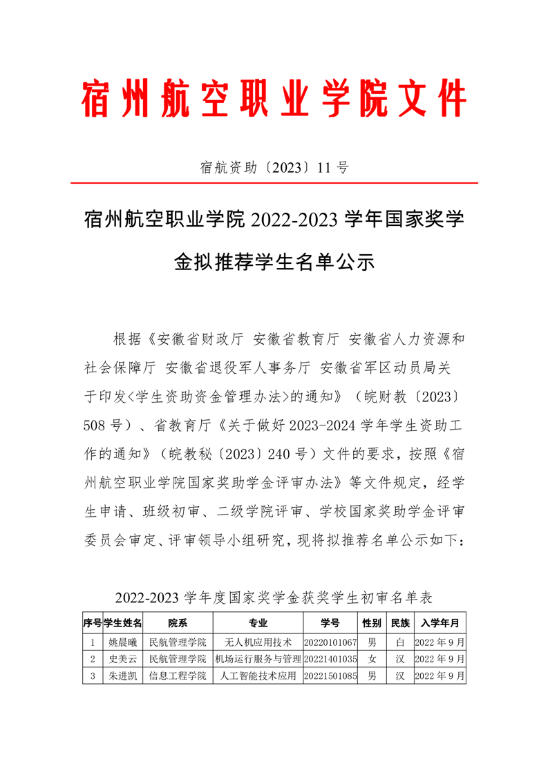 彩神Vll学院 2022-2023学年国家奖学金拟推荐学生名单公示