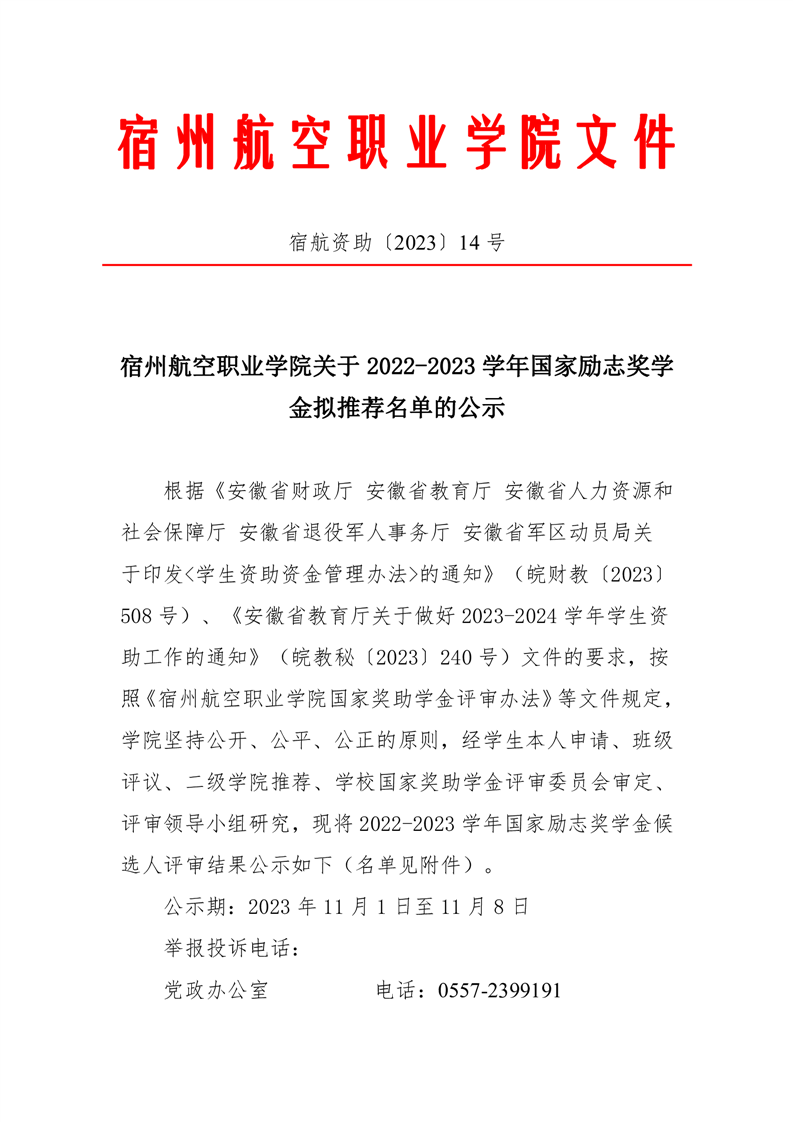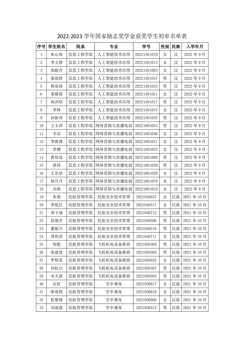 彩神Vll学院关于2022-2023 学年国家励志奖学金拟推荐名单的公示