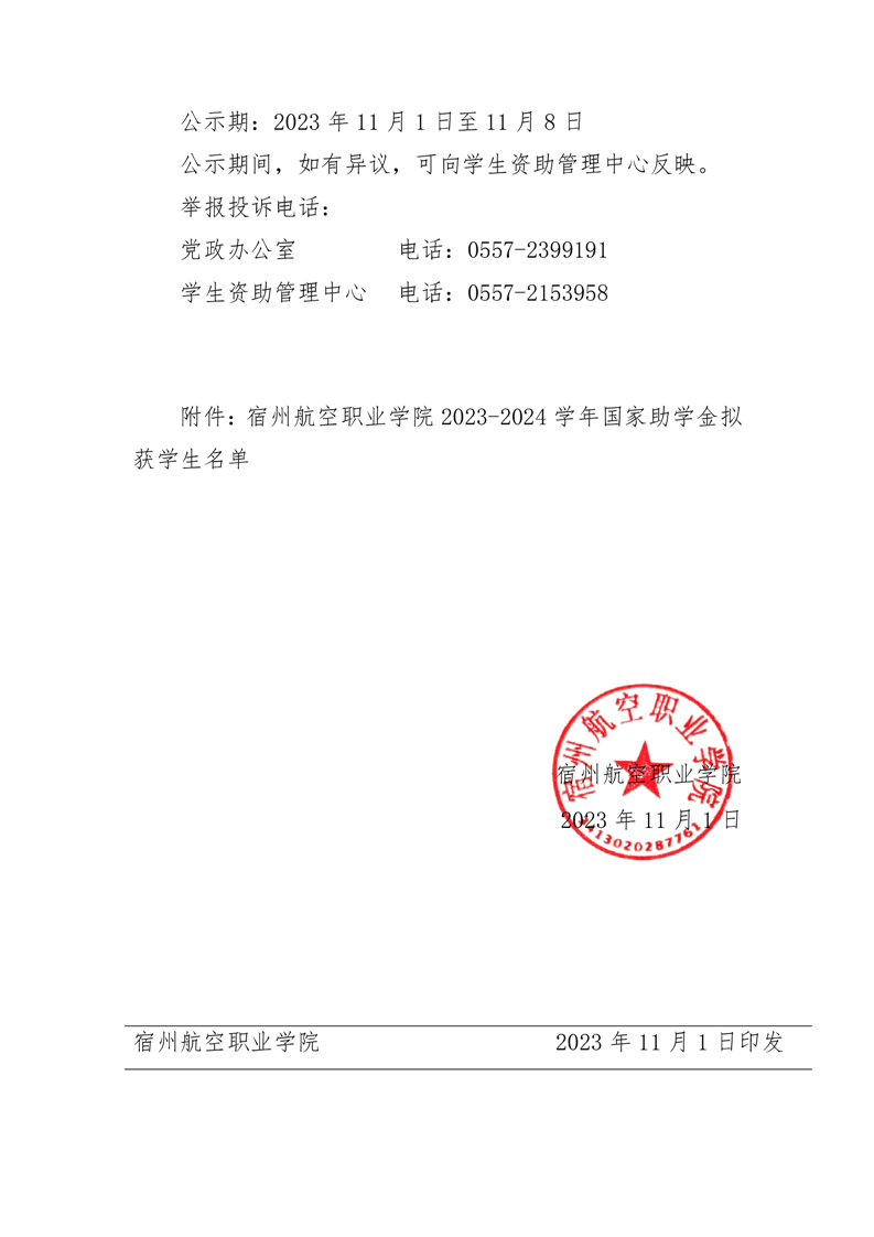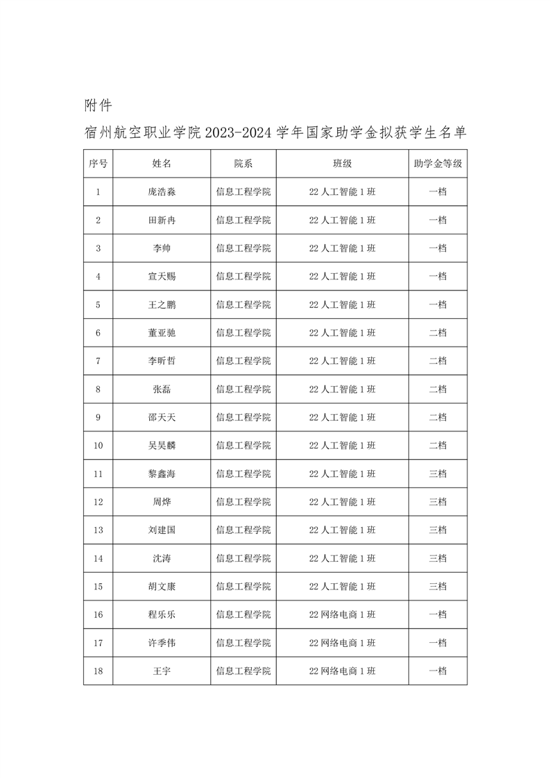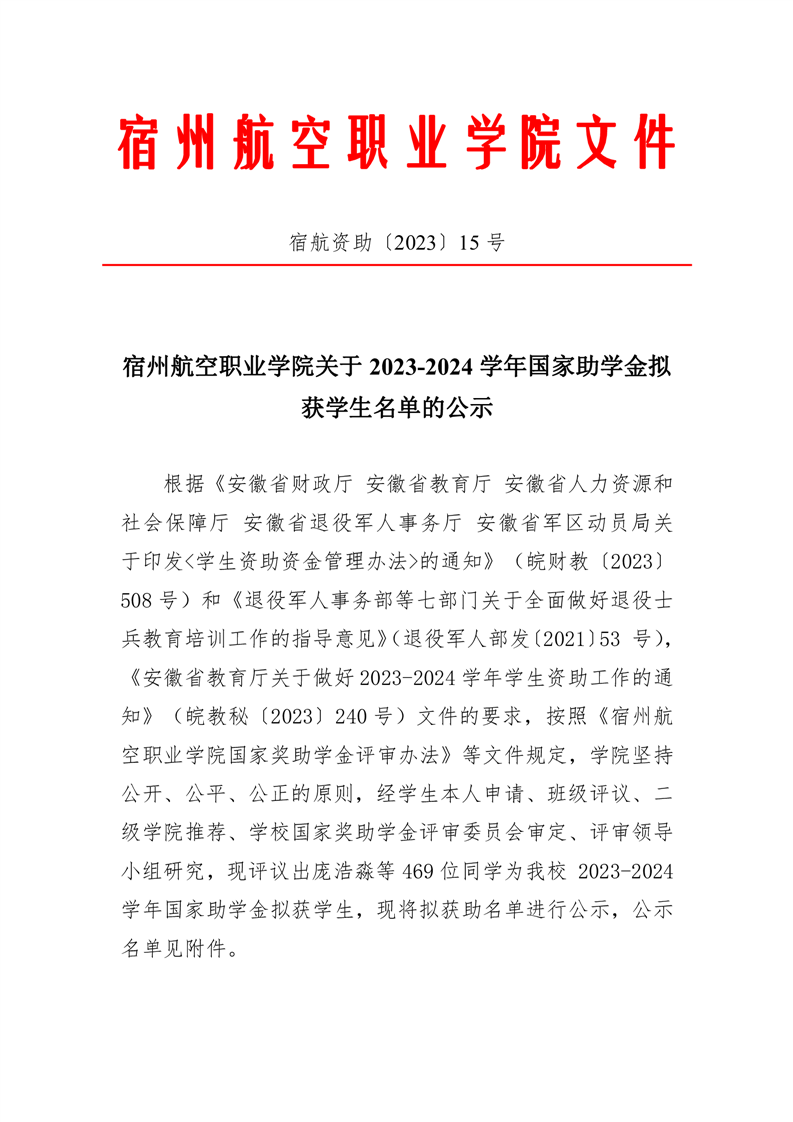彩神Vll学院关于2023-2024 学年国家助学金拟获学生名单的公示