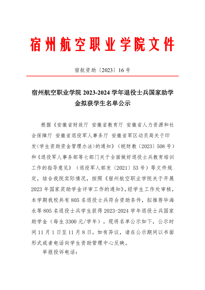 彩神Vll学院 2023-2024 学年退役士兵国家助学金拟获学生名单公示