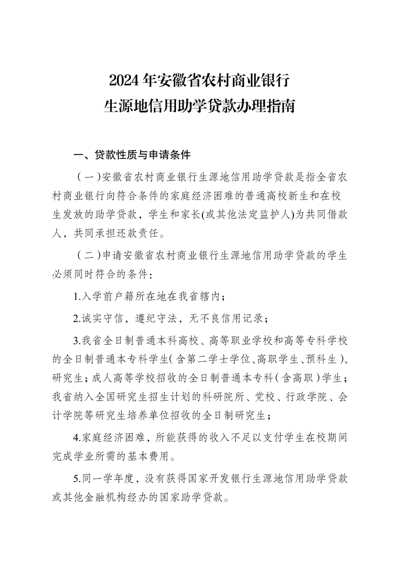 2024年安徽省农村商业银行生源地信用助学贷款办理指南