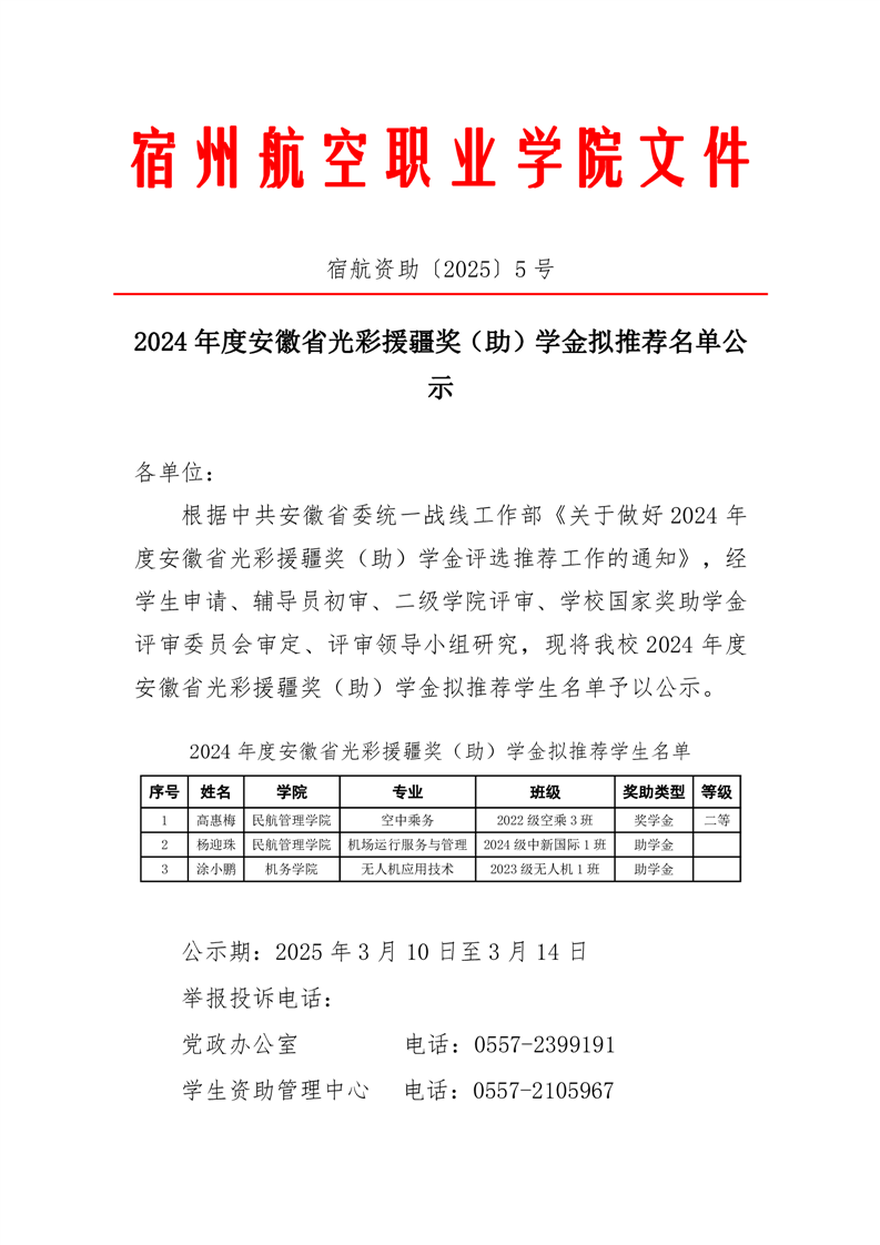 彩神Vll学院2024年度安徽省光彩援疆助学金推荐名单公示