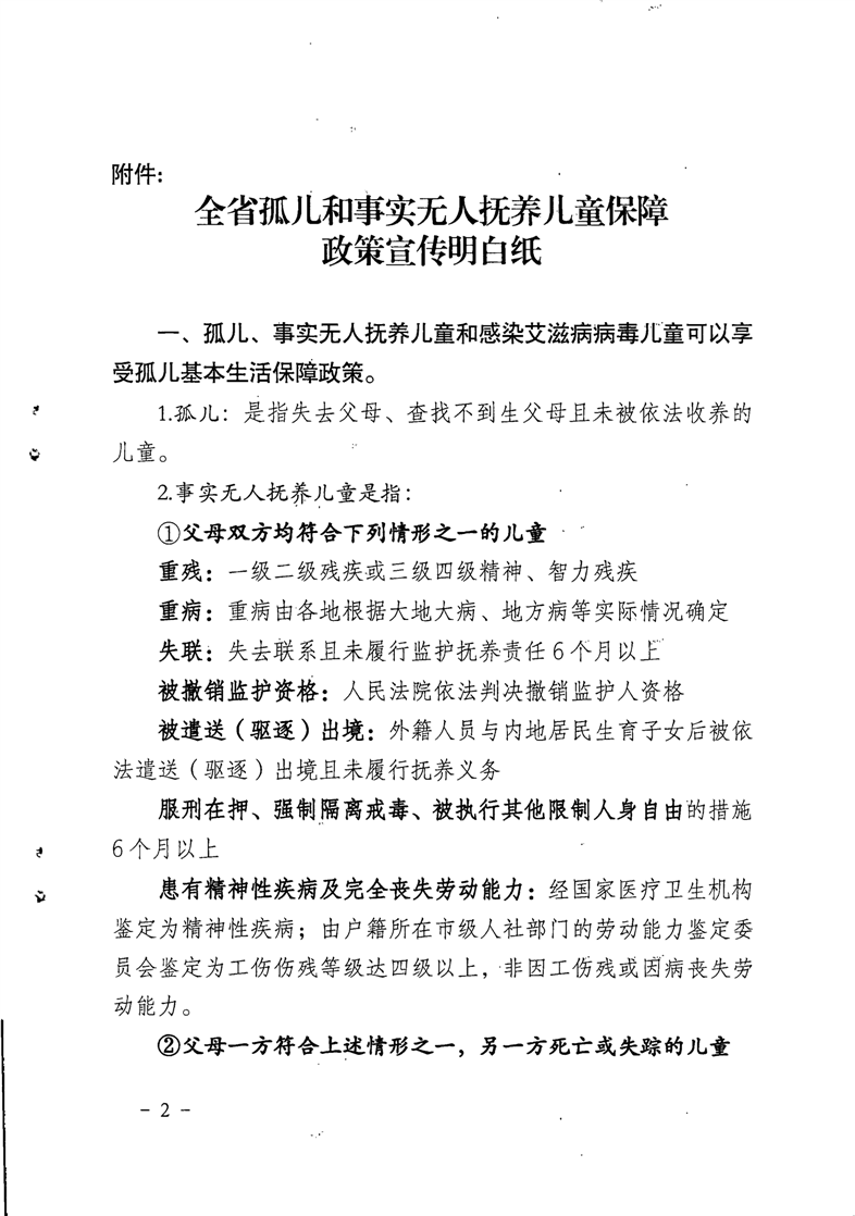 安徽省孤儿和事实无人抚养儿童保障政策宣传明白纸