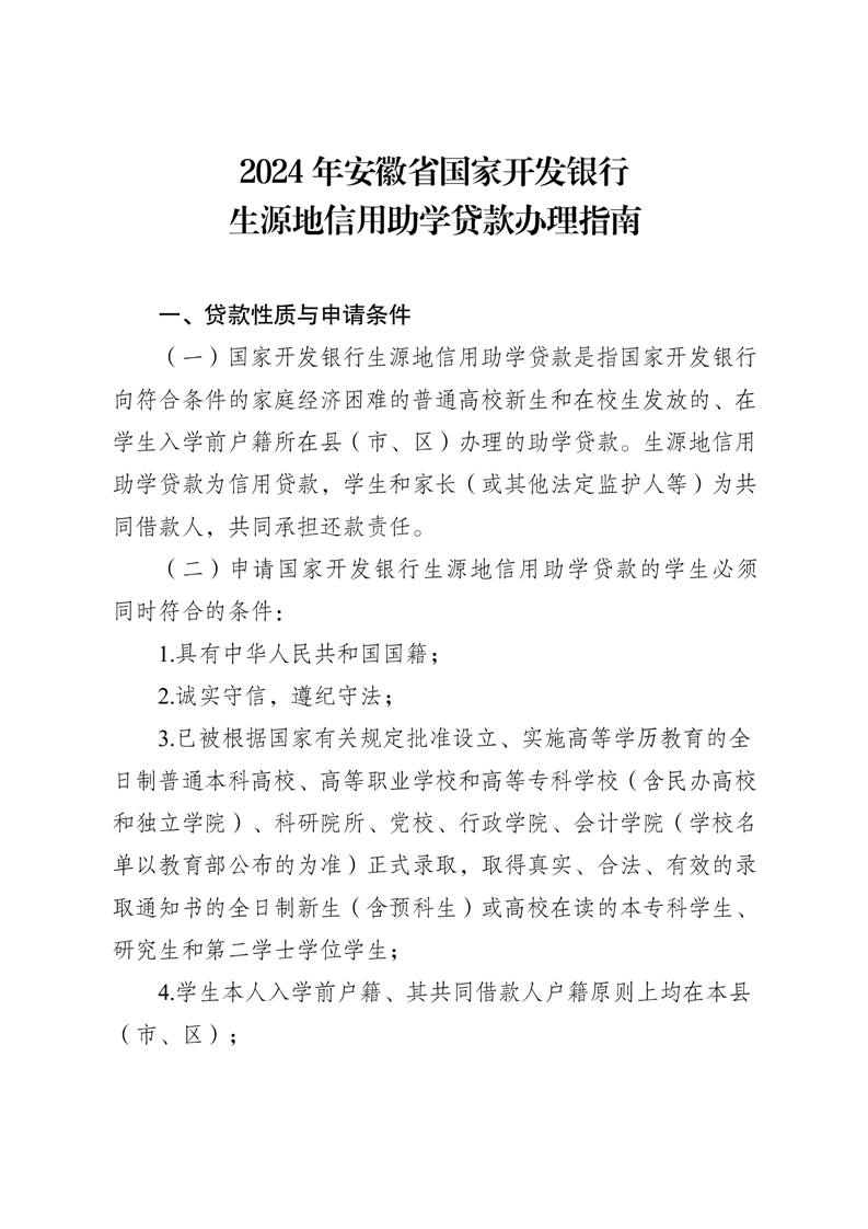 2024年安徽省国家开发银行生源地信用助学贷款办理指南