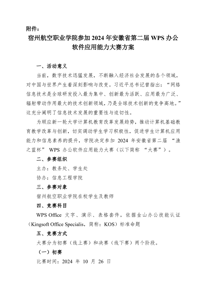 关于印发《彩神Vll学院参加2024年安徽省第二届WPS办公软件应用能力大赛方案》的通知