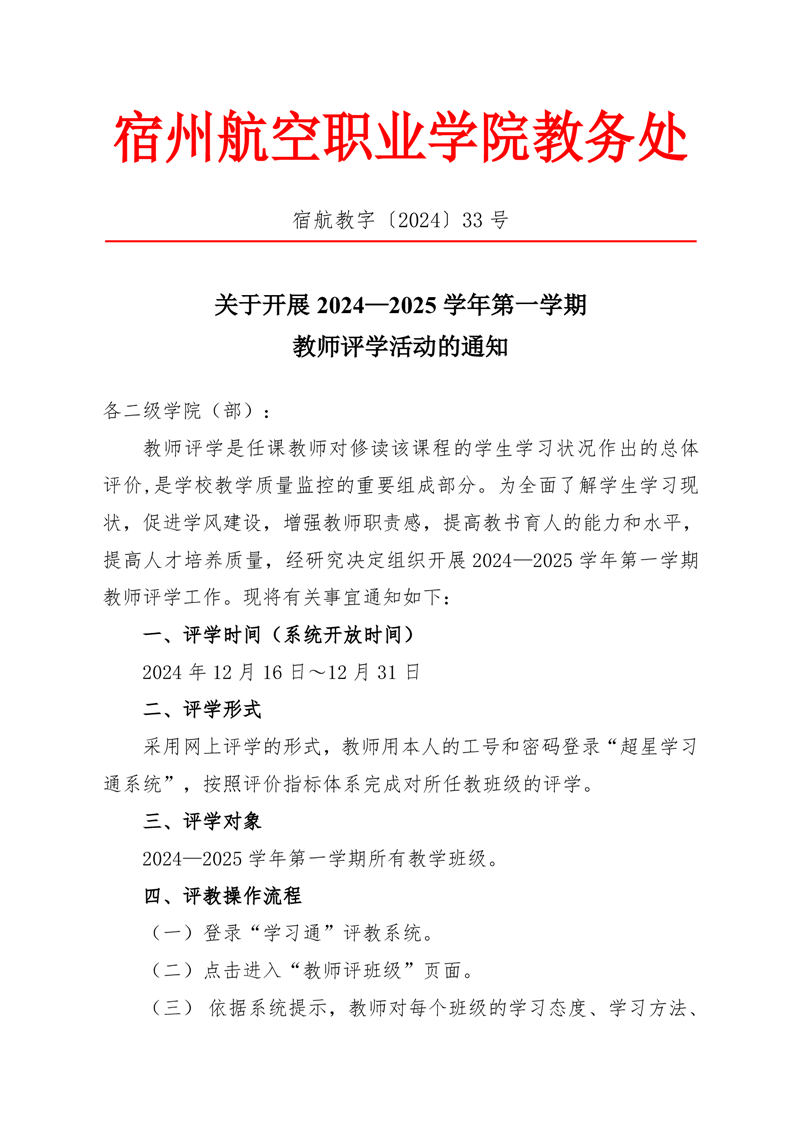关于开展2024—2025学年第一学期教师评学活动的通知
