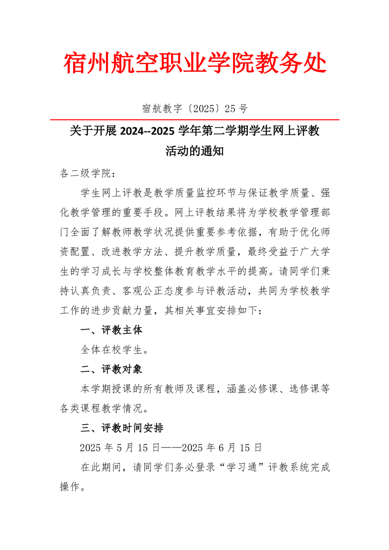 关于开展2024-2025学年第二学期学生网上评教活动的通知