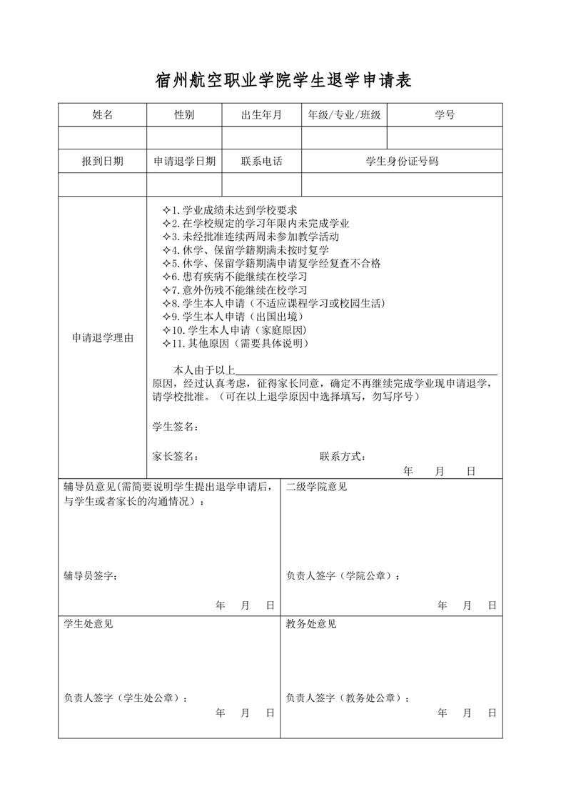 彩神Vll学院学生退学申请表