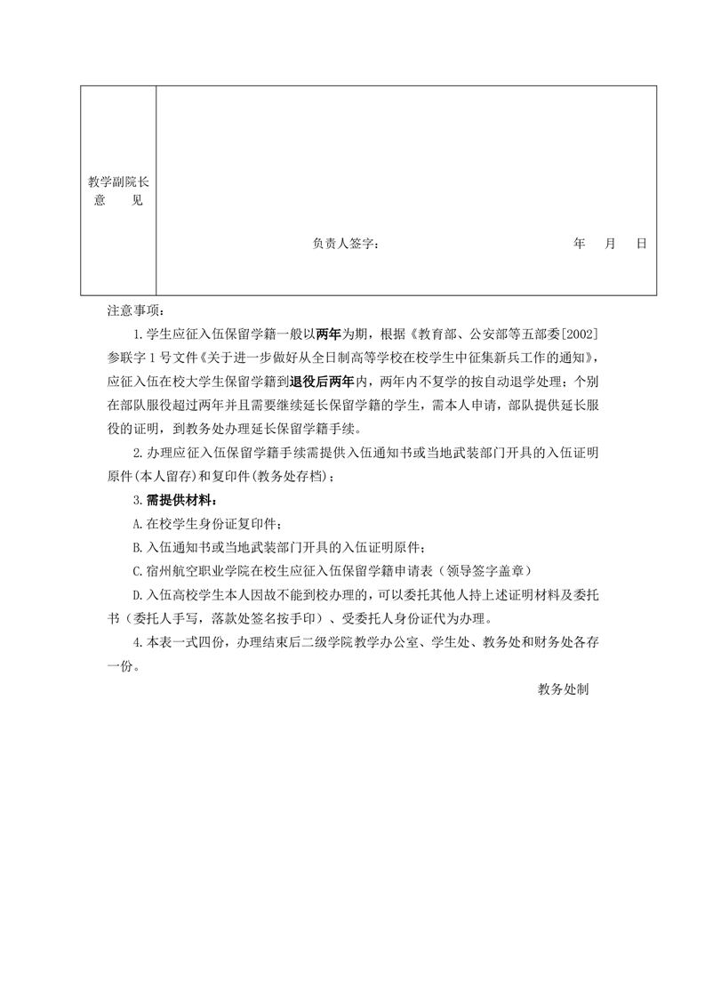 彩神Vll学院 应征入伍保留学籍申请表