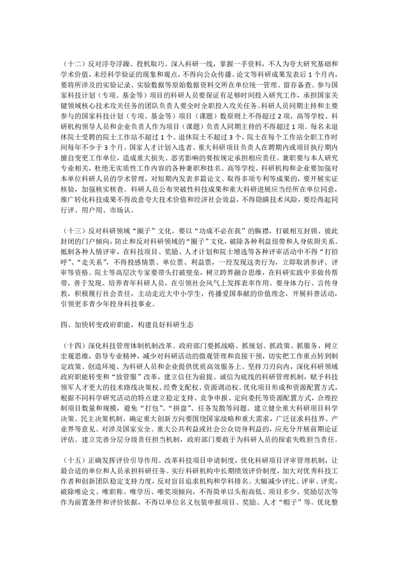 中共中央办公厅 国务院办公厅印发《关于进一步加强科研诚信建设的若干意见》(厅字〔2018〕23 号)
