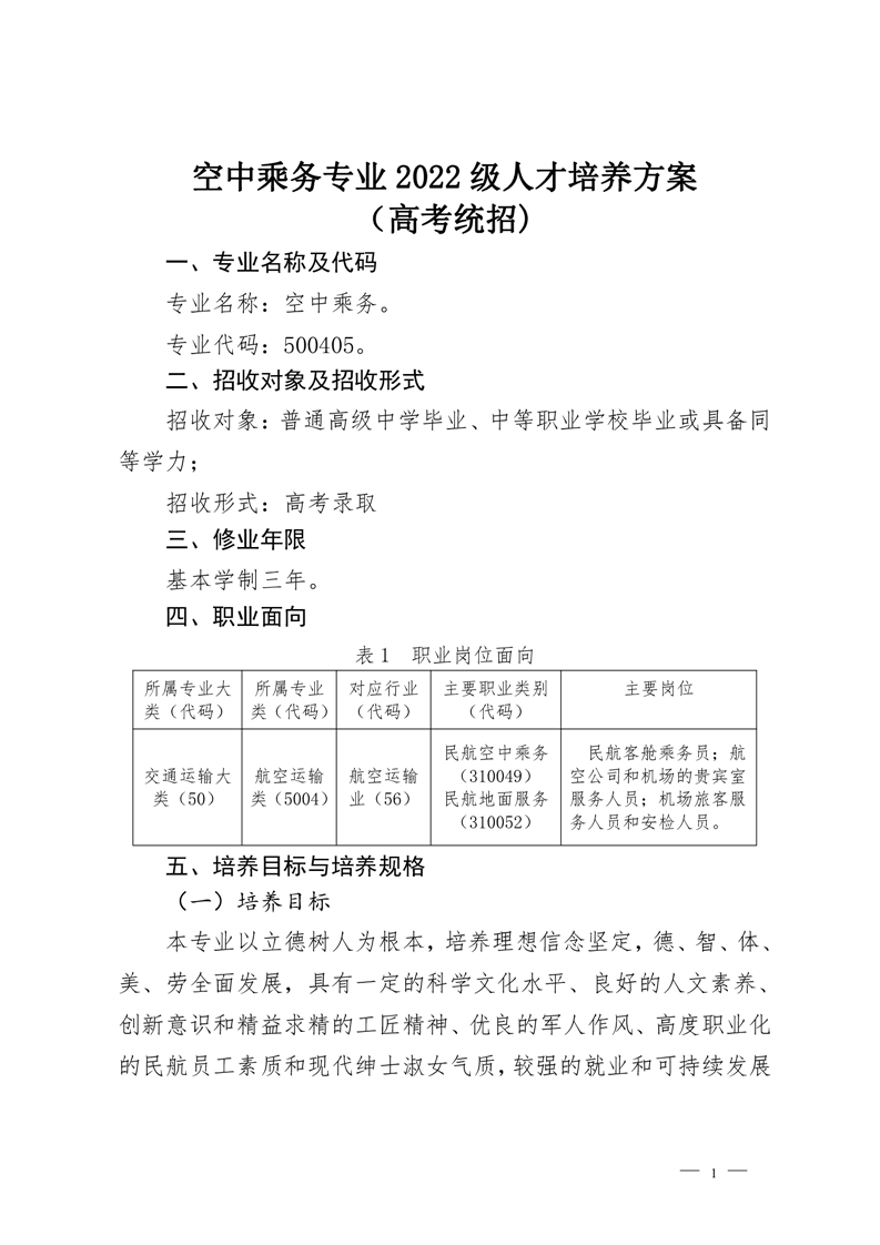 民航安全技术管理专业2022级人才培养方案 (高考统招)