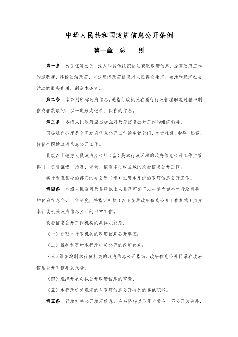 中华人民共和国政府信息公开条例