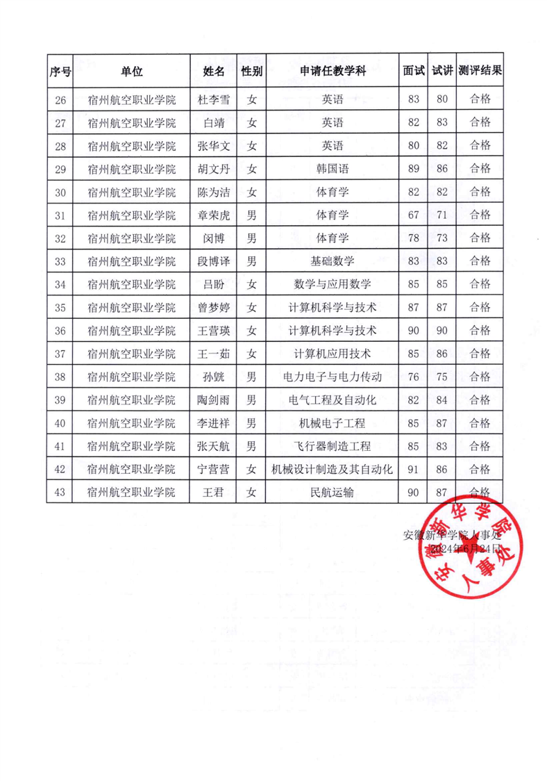 2024年安徽省民办高职院校教师资格认定教育基本素质和能力测评结果公示