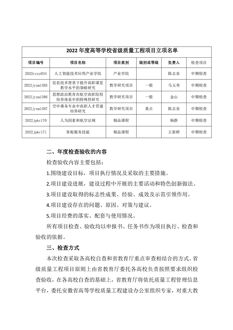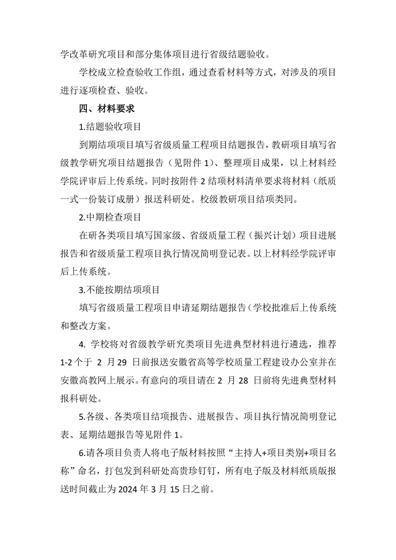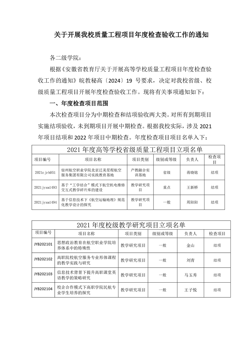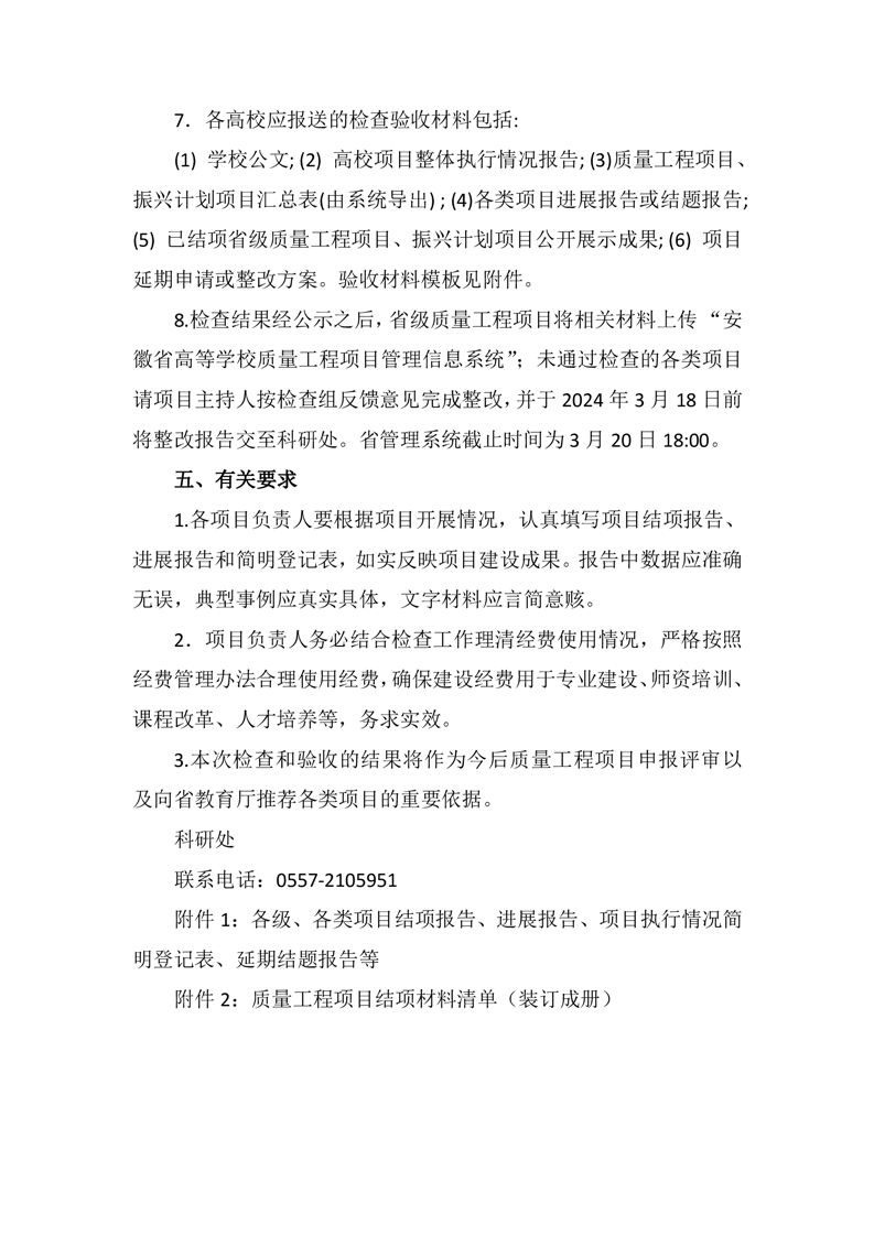 关于开展我校质量工程项目年度检查验收工作的通知