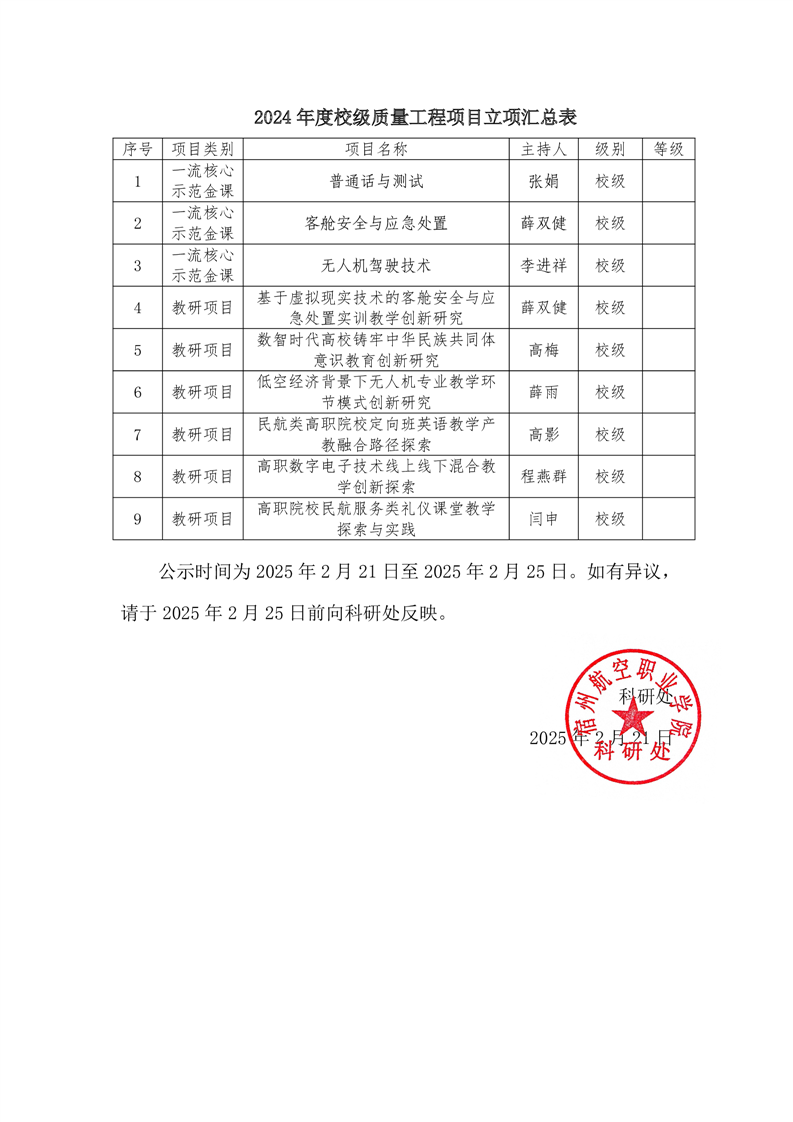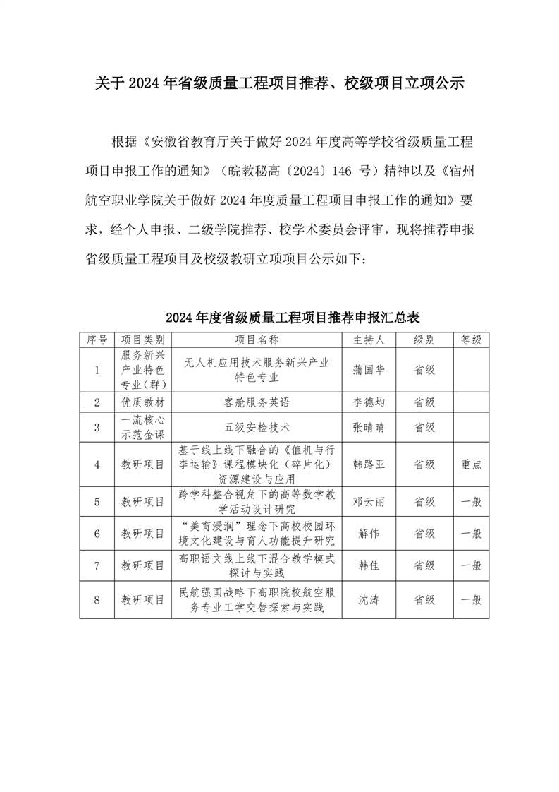 关于发布2024年省级质量工程推荐项目及校级教研项目立项的通知