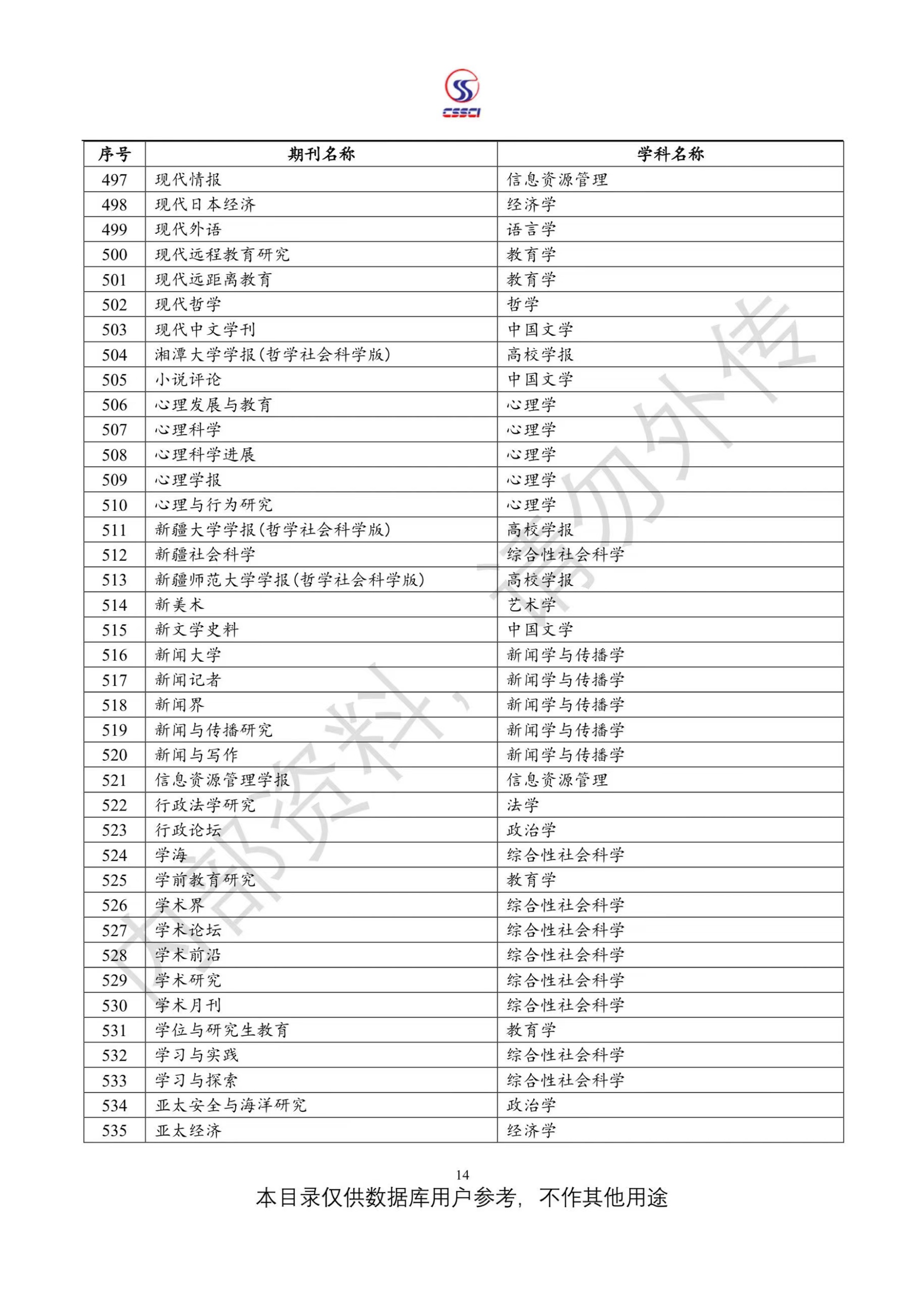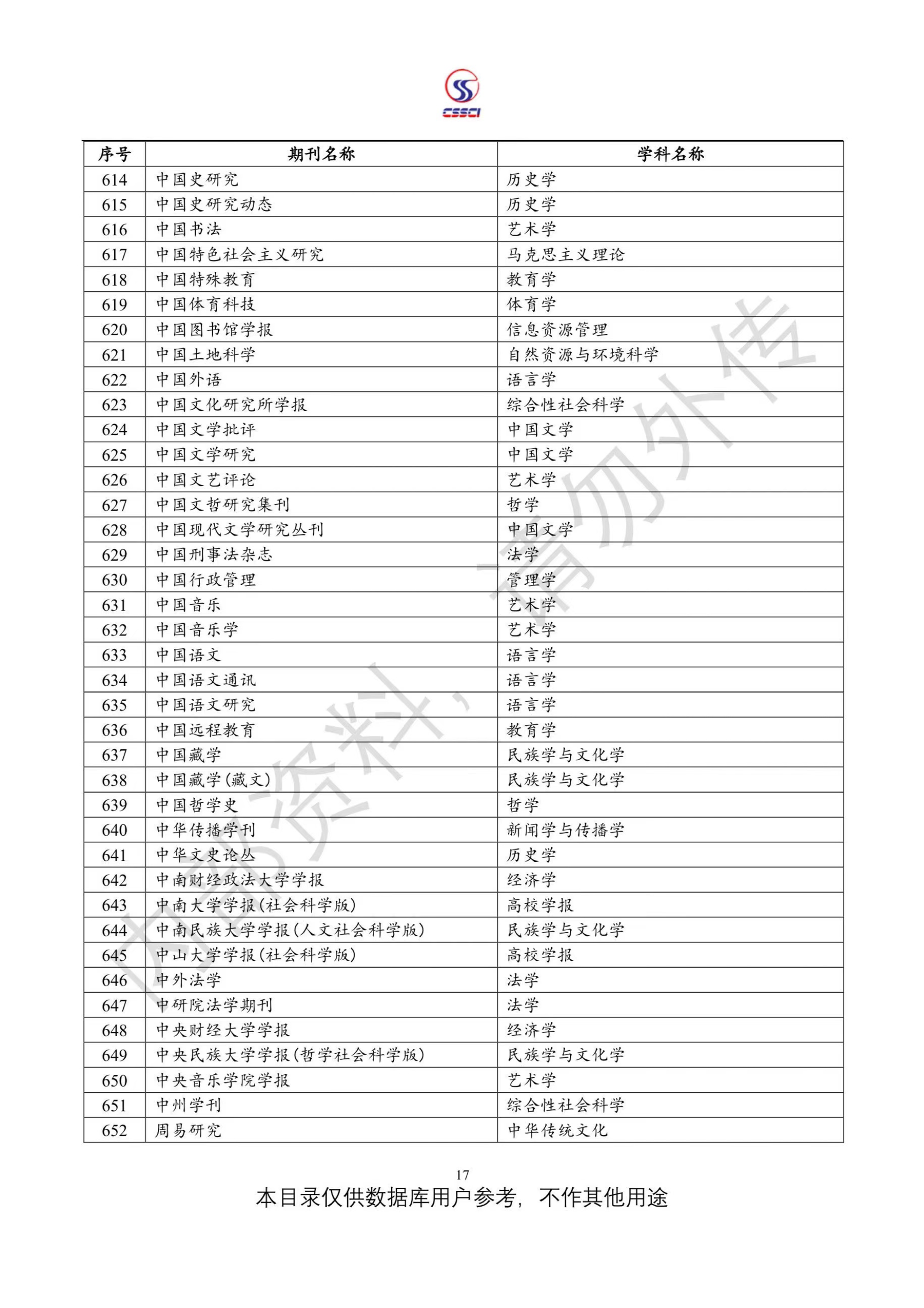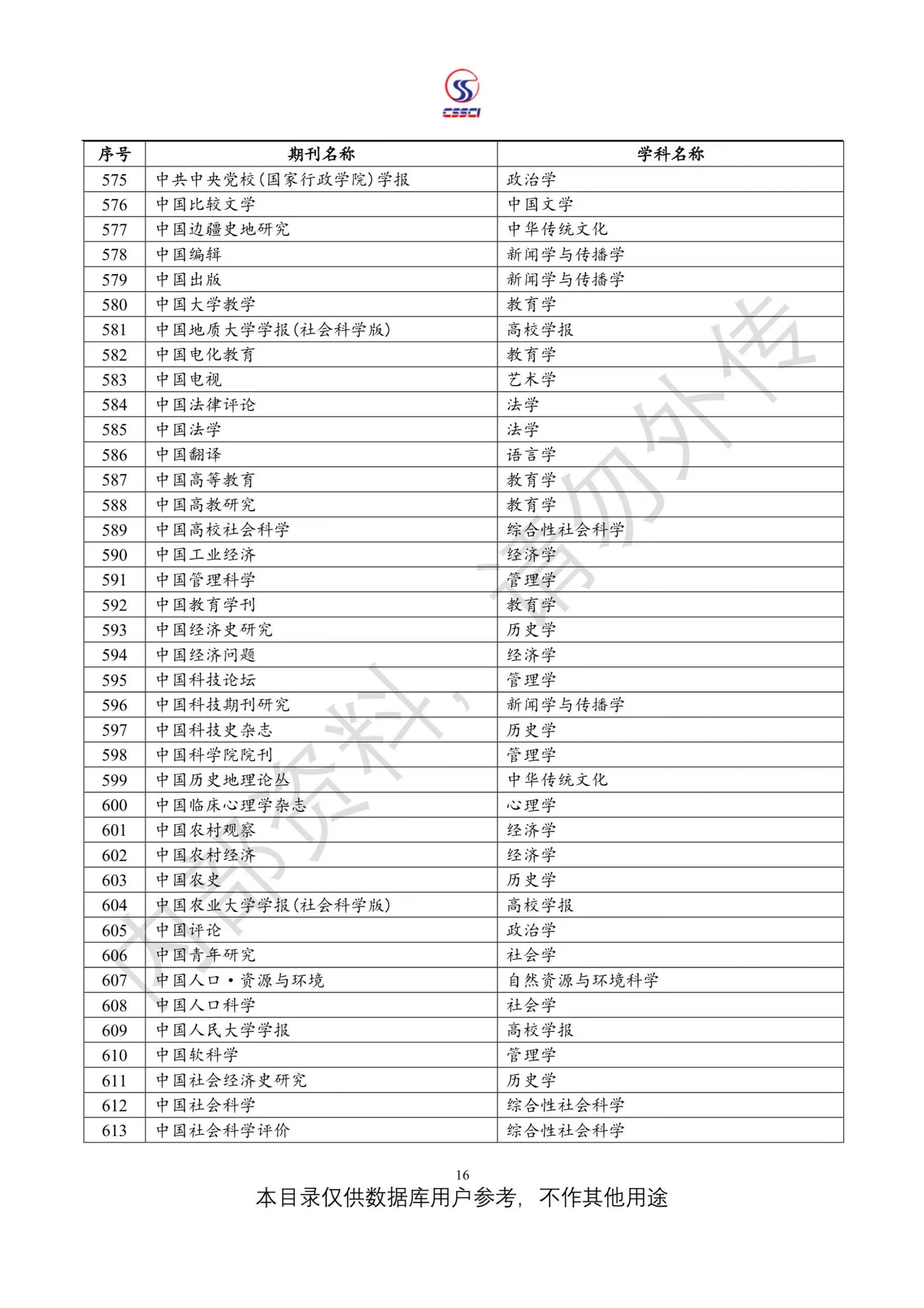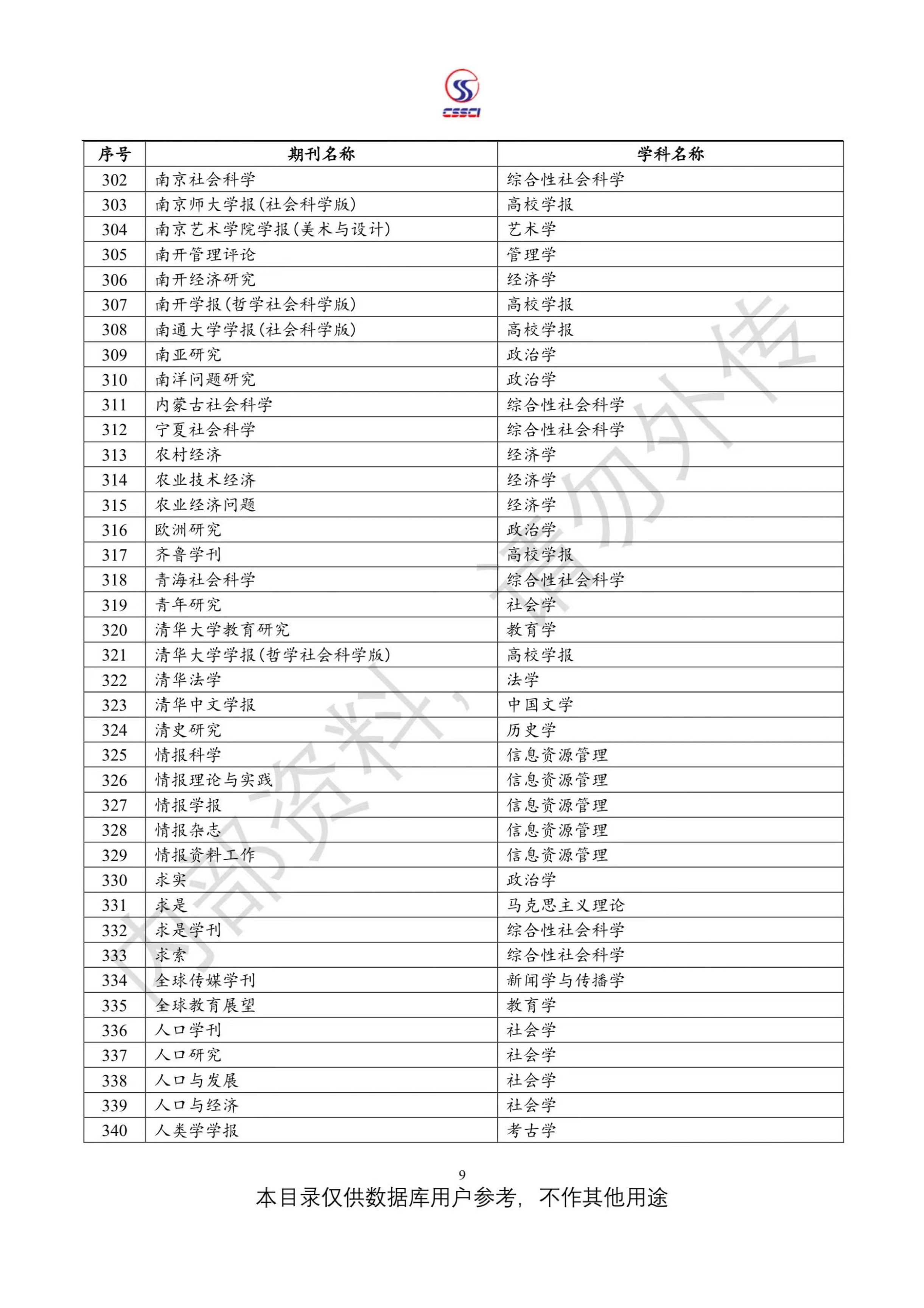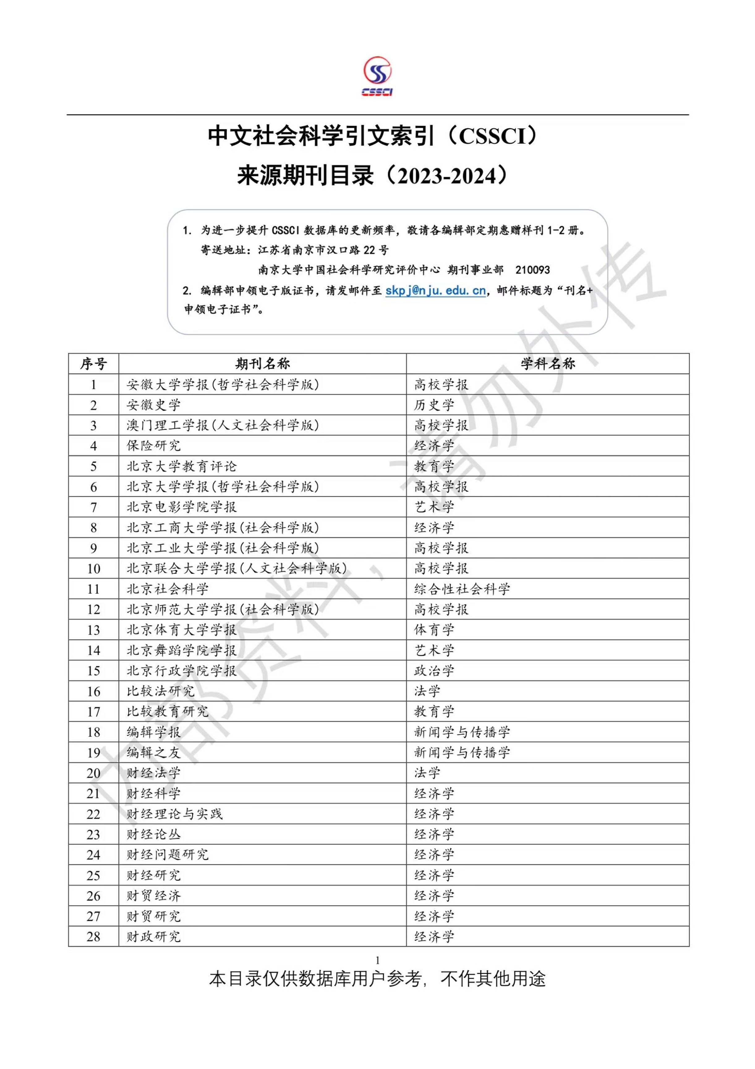 中文社会科学引文索引(CSSCI)来源期刊目录(2023-2024)