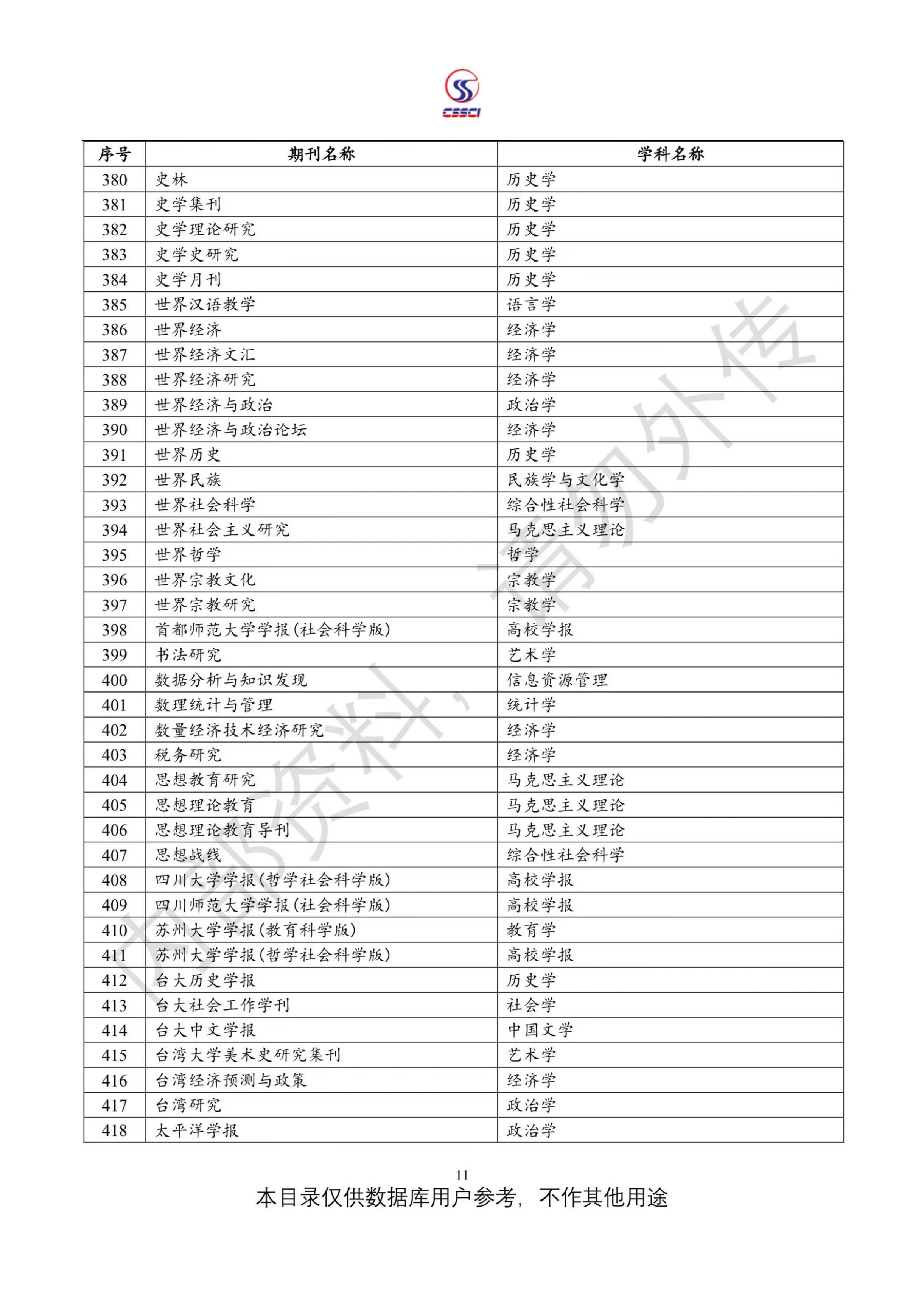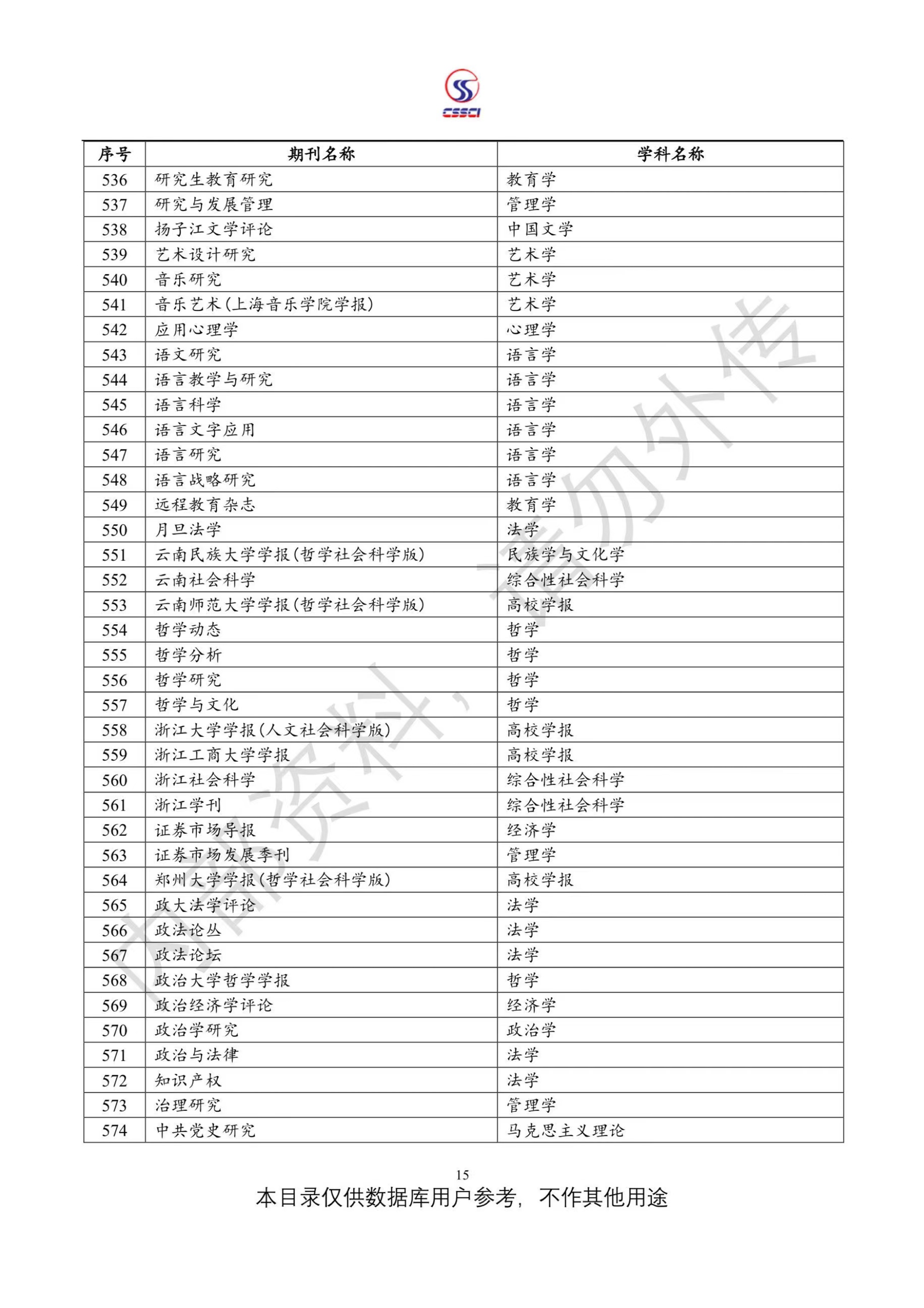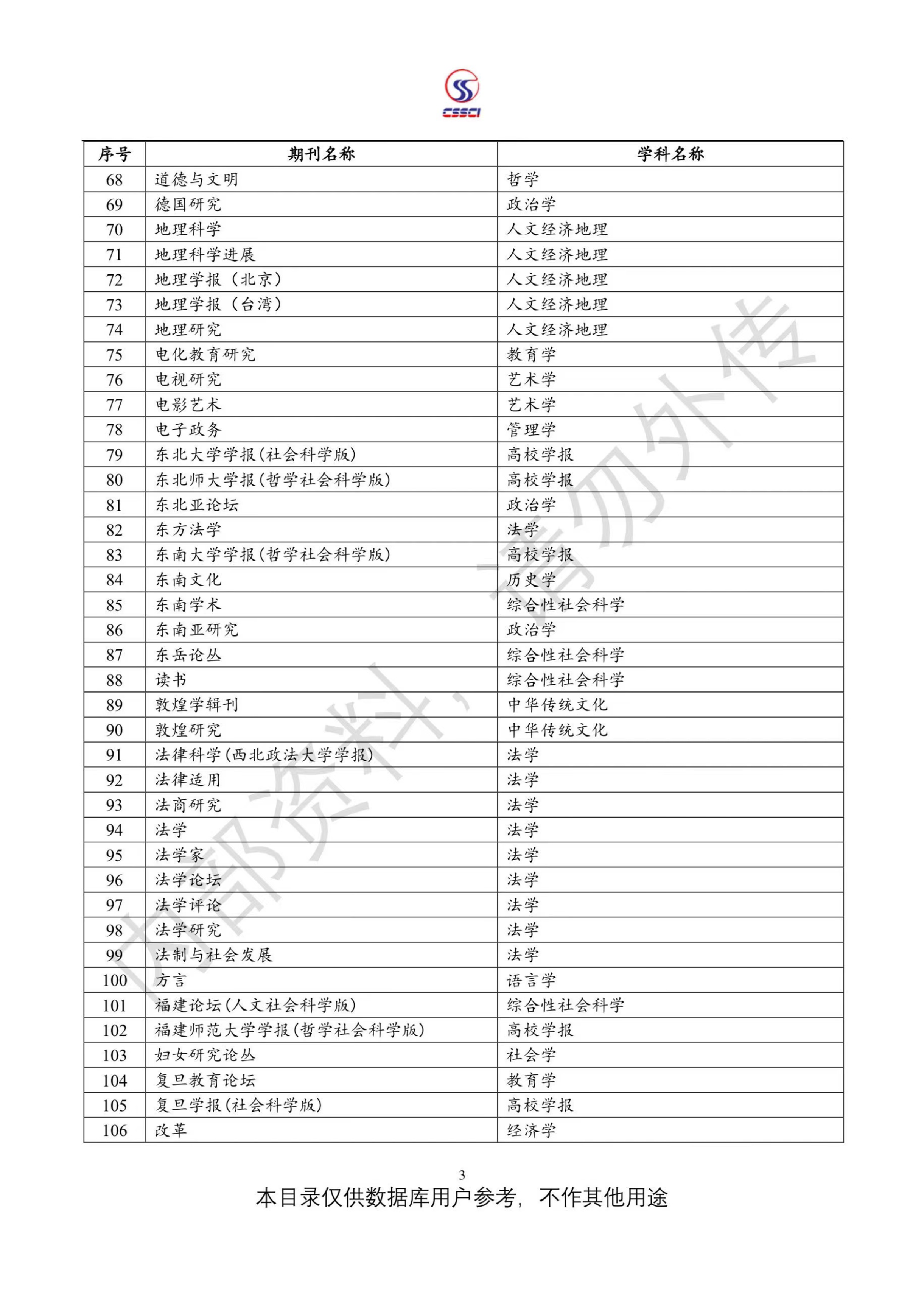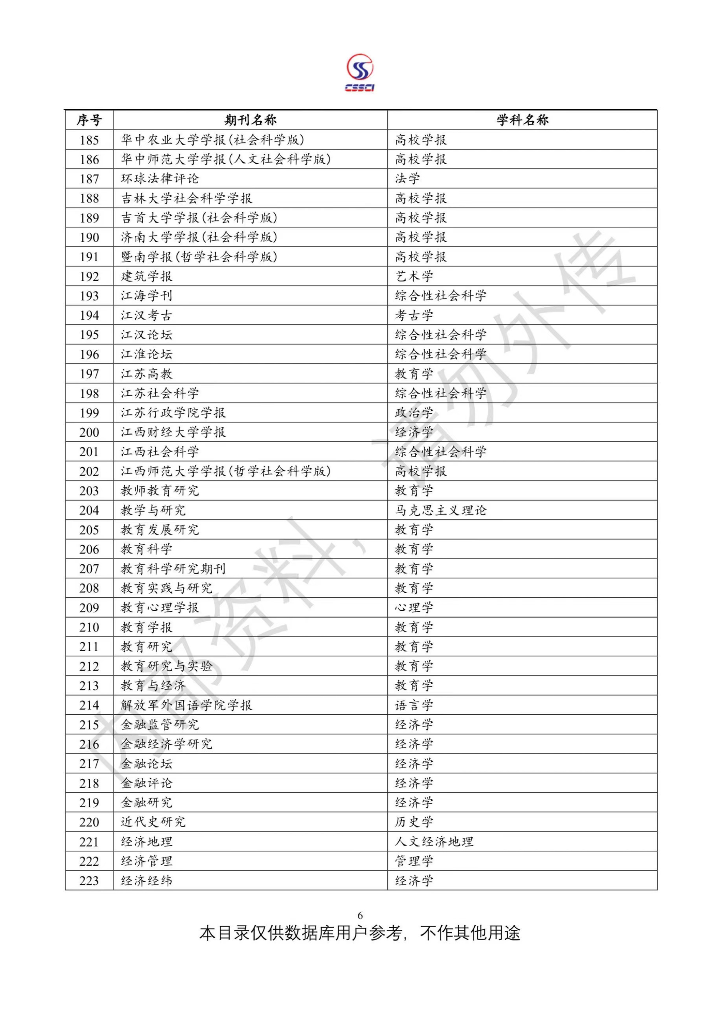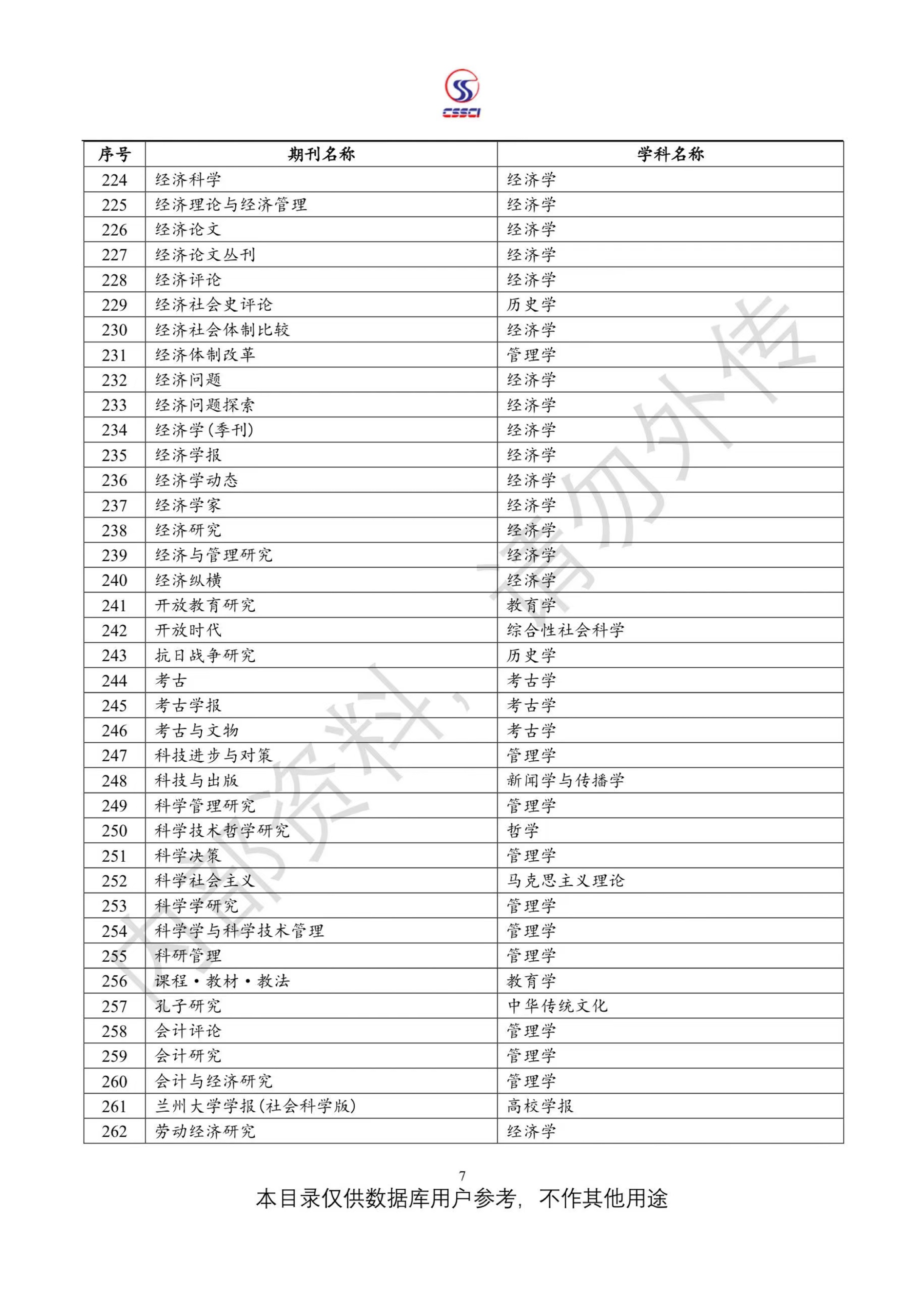 中文社会科学引文索引(CSSCI)来源期刊目录(2023-2024)