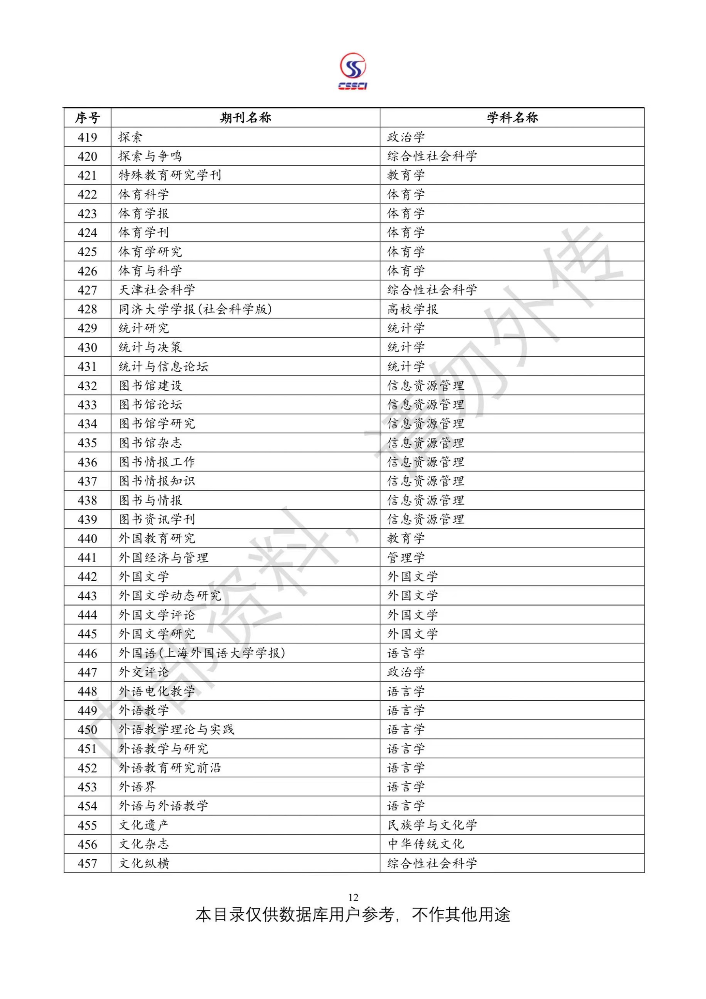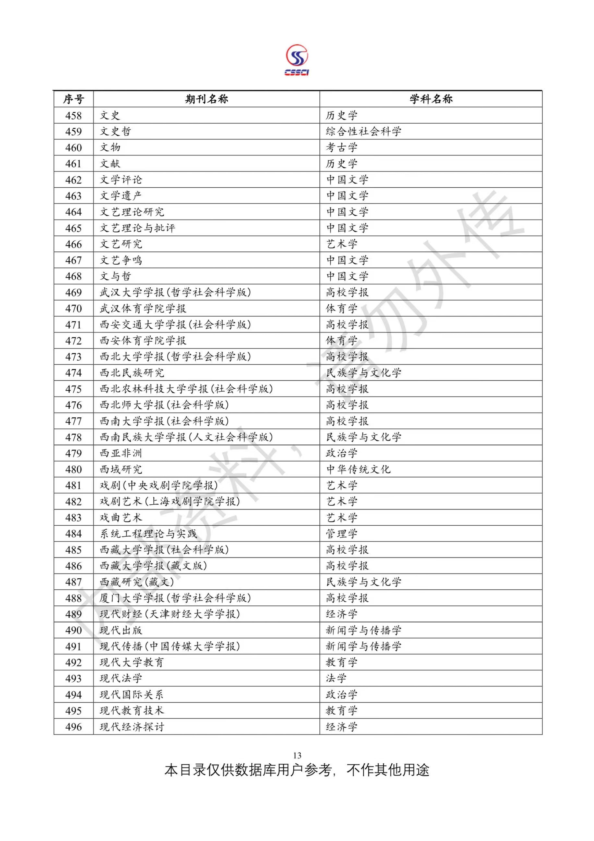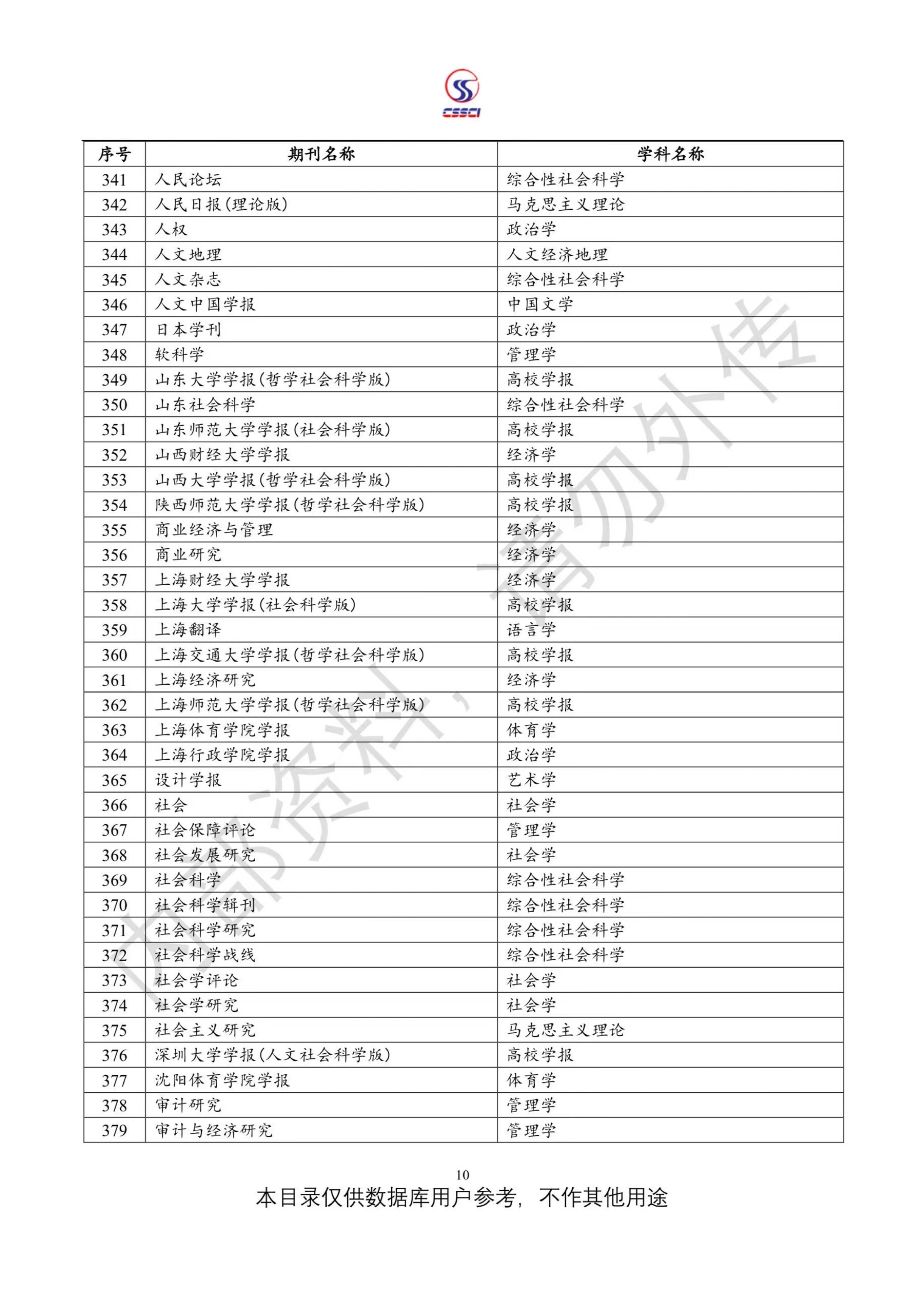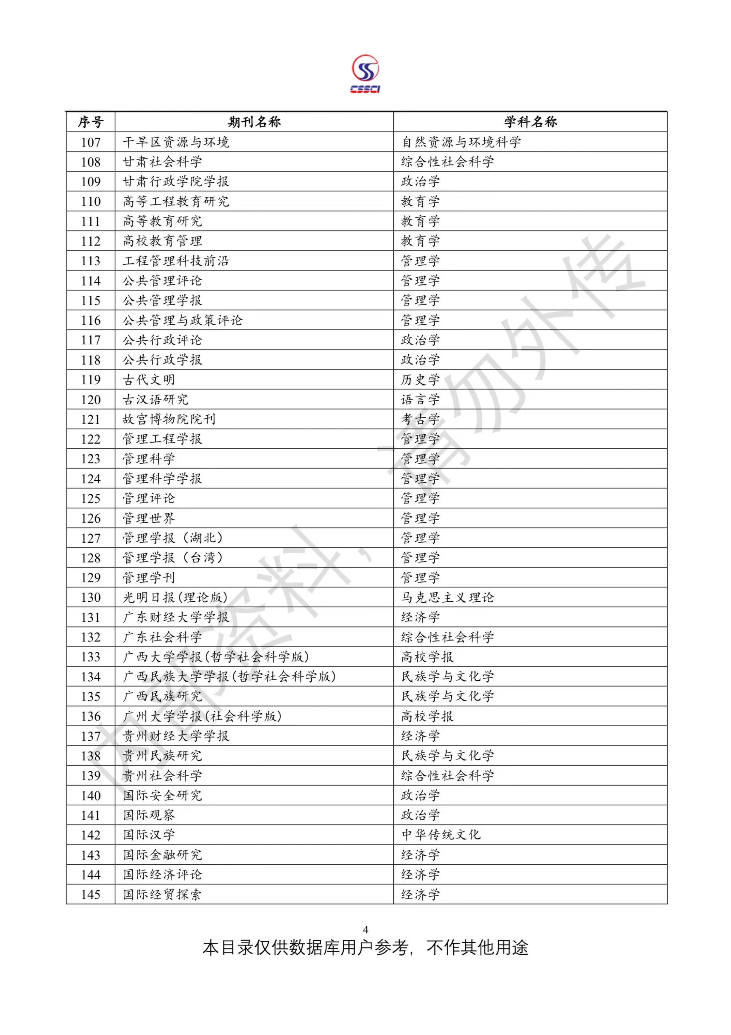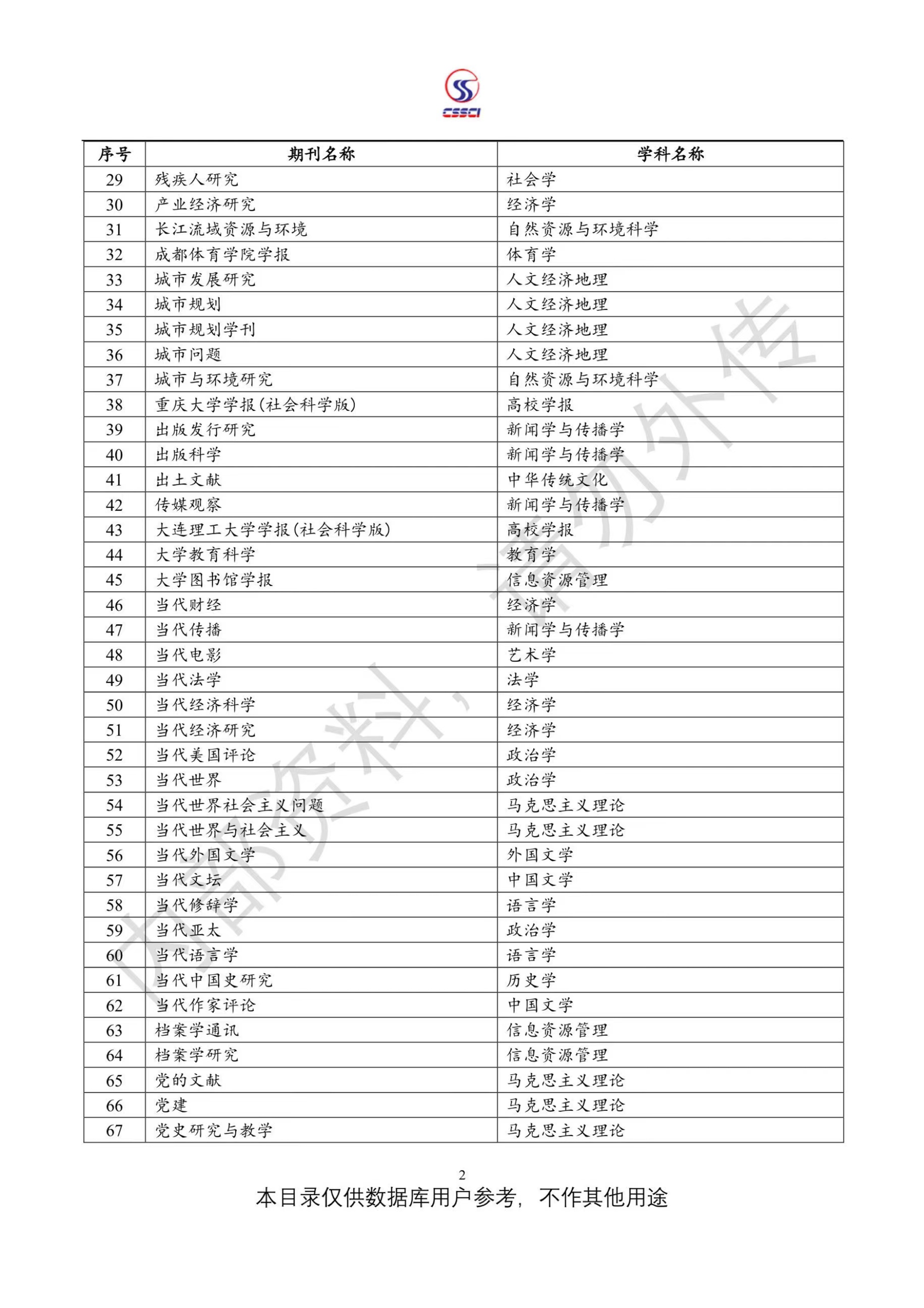 中文社会科学引文索引(CSSCI)来源期刊目录(2023-2024)