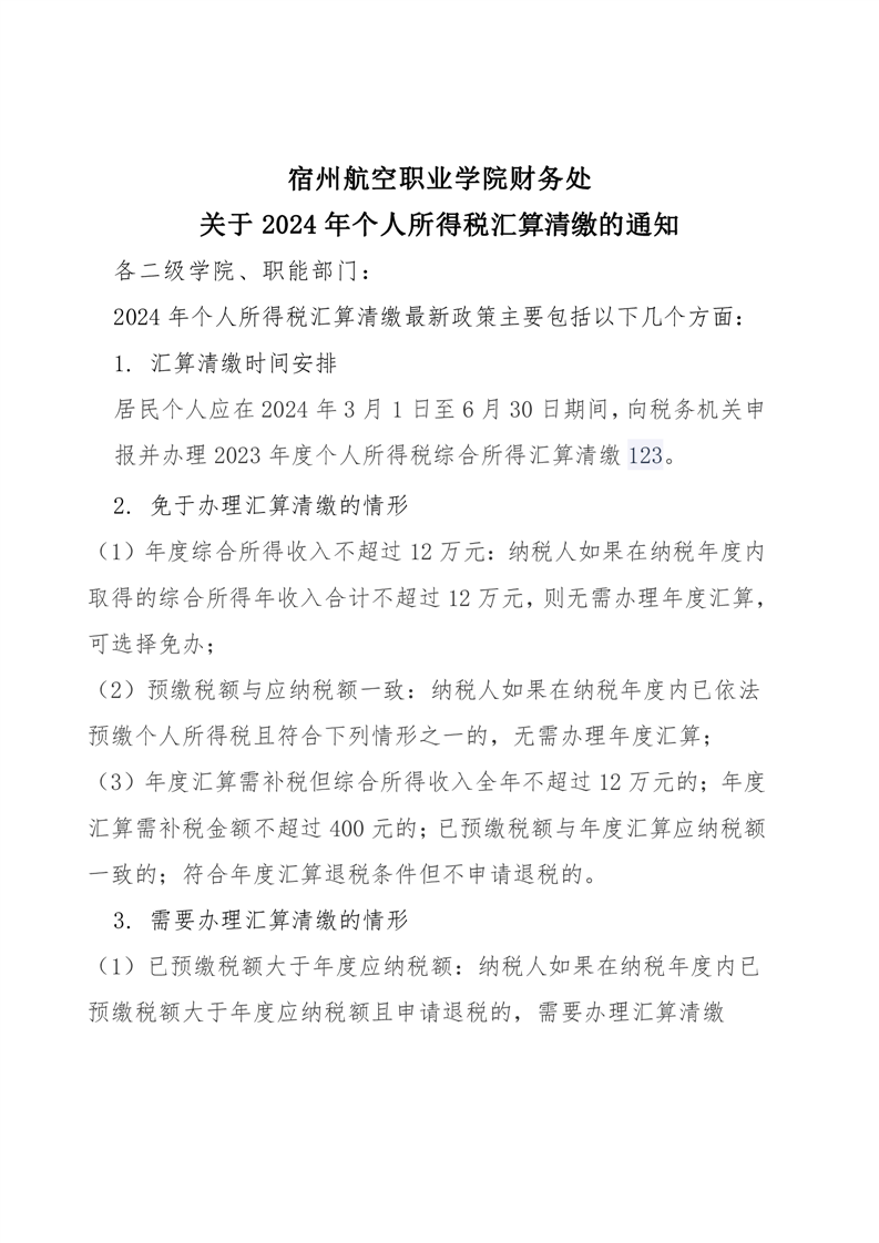 彩神Vll学院财务处 关于2024年个人所得税汇算清缴的通知