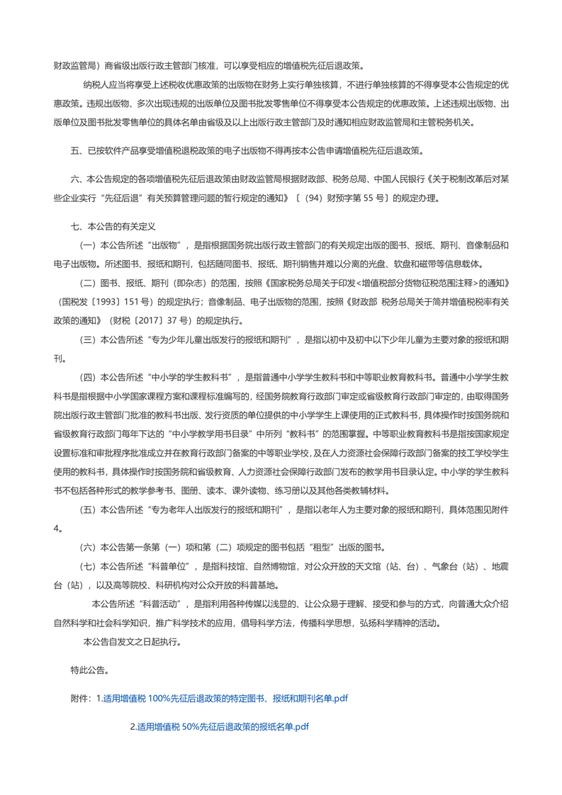 财政部 税务局关于延续实施宣传文化增值税优惠政策的公告