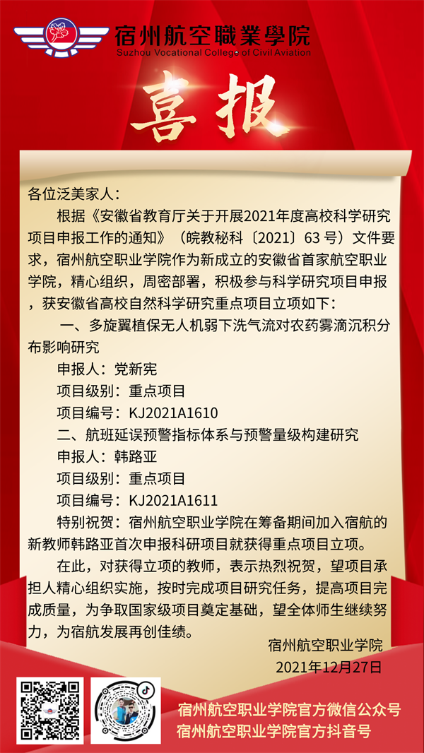除此🤵🏼♀️💂♀️,2021年宿航院分别获批“安徽省第二批国际交流合作基地”及两项科研项目获“安徽省高校自然科学研究重点项目立项”🐩。学院在国际交流和开发合作方面有引领、示范👨🔧、带动作用。