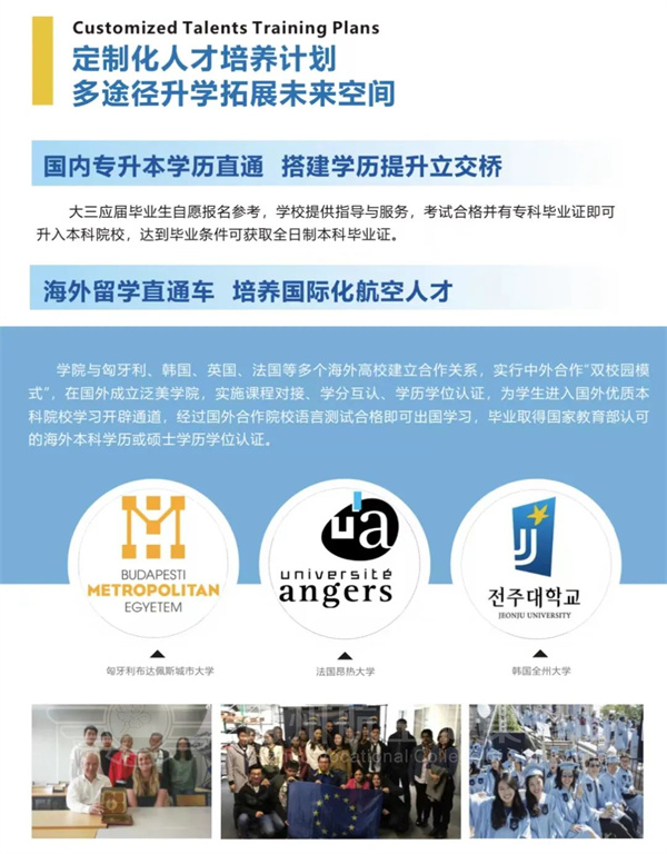 学院采用集团化办学模式🌍,集团拥有中国民航局授予的“民航客舱服务培训”、“民航安全员培训”等资质,与民航机场、北京中软国际教育科技股份有限公司等建立有合作关系,毕业生将主要就业于飞行、空乘、空保、无人机驾驶、飞机维修、安检🏌️‍♂️、航空物流、贵宾服务🧔🏿、值机☝️、AI数据工程师、互联网营销师等岗位。
