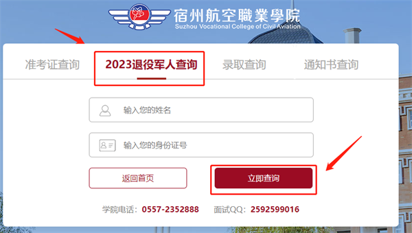 2.进入后,点击“2023退役军人查询”👱🏽♂️,根据提示填写学生姓名及身份证号码🚒,填写正确后🕙,点击“立即查询”,即可查看资格审核结果;
