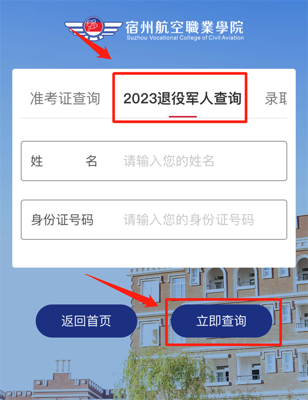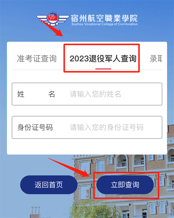 3.点击“2023退役军人查询”;进入页面后根据提示填写考生姓名及身份证号,点击“立即查询”,即可查看资格审核结果🚽;