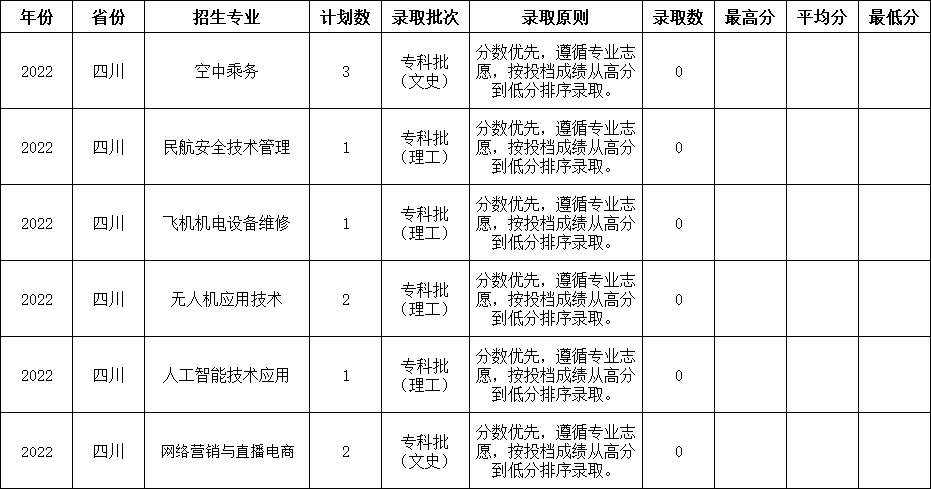 2022.08.19我校在四川省普通类专科批征集志愿招生录取工作结束,计划10➛,投档0👨🏽‍🚀,录取0,考生可登录http://www.szhkxy.com/Admission/查询录取结果。