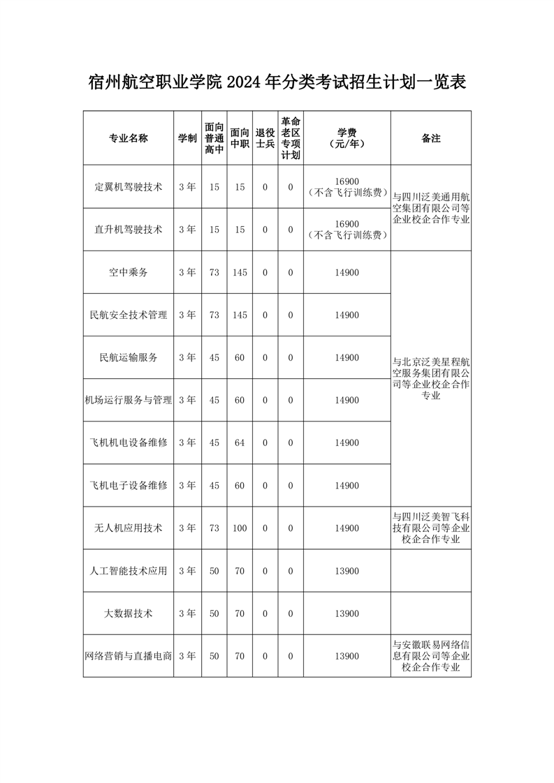 彩神Vll学院2024年分类考试招生计划一览表