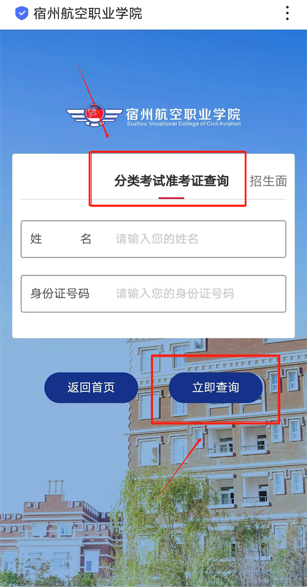 3.进入后点击“分类考试准考证查询”🛋,根据提示填写学生姓名及身份证号码🤷,填写正确后,点击下方“立即查询”🧑🏼🦲;