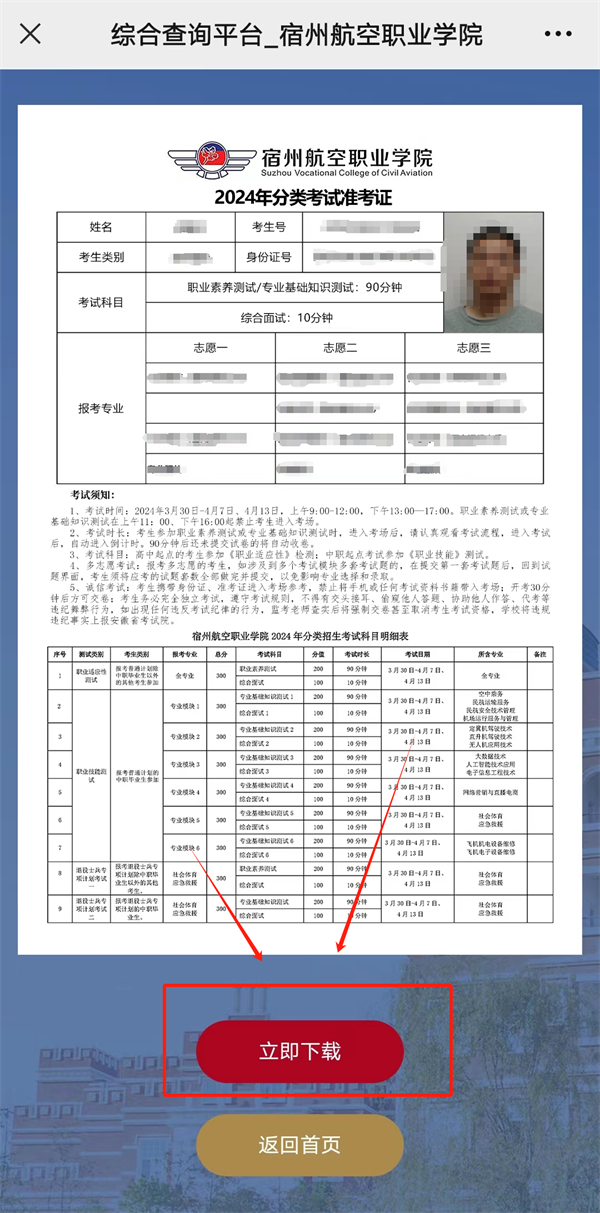 4.点击“立即查询”后,即可查看准考证信息,请考生仔细核对个人信息,核对无误后,点击下方“立即下载”,下载准考证。