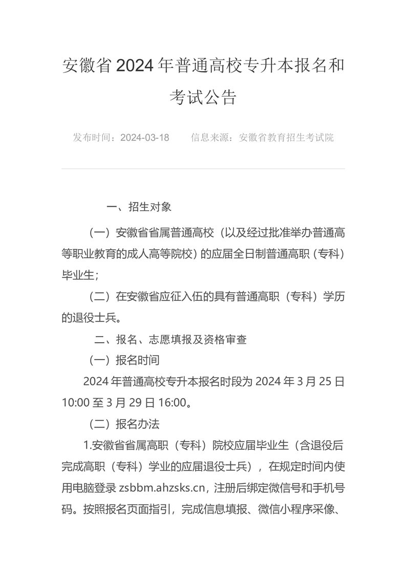 安徽省2024年普通高校专升本调剂志愿填报即将开始