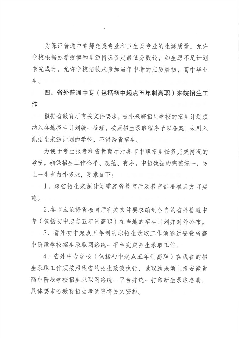 安徽省教育招生考试院关于印发2024年安徽省初中起点五年制高职招生来源计划的通知