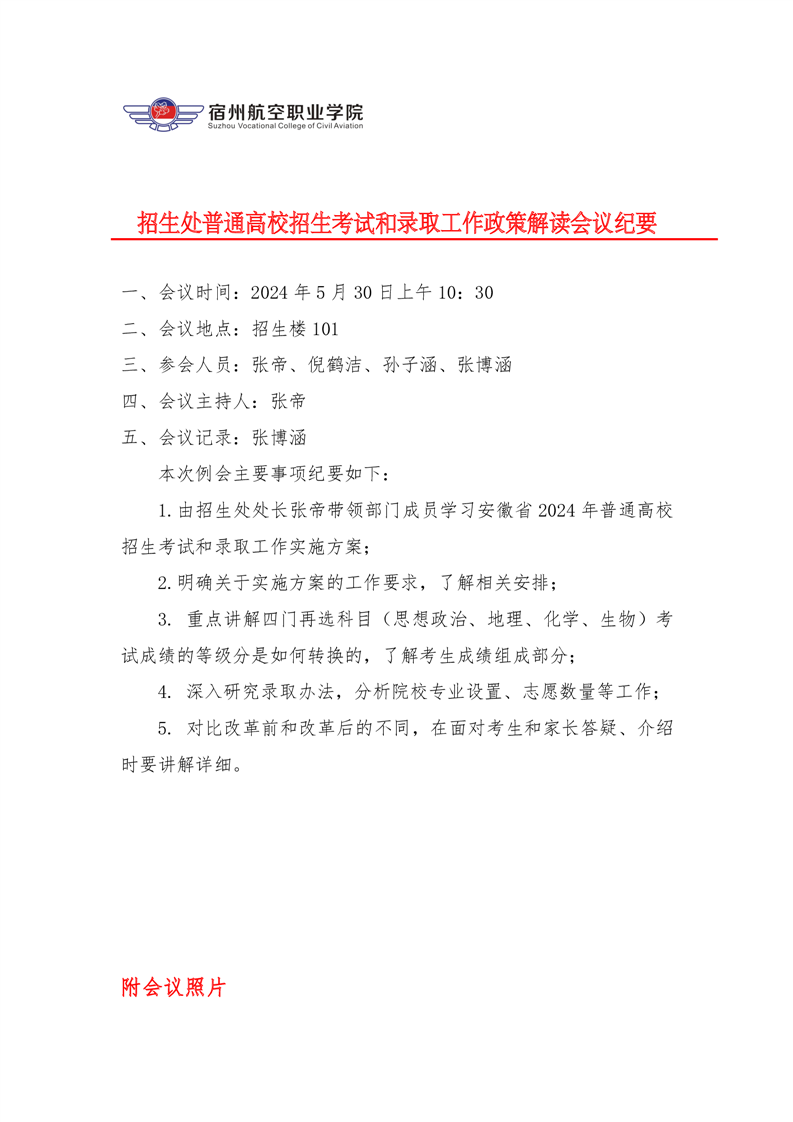 招生处普通高校招生考试和录取工作政策解读会议纪要