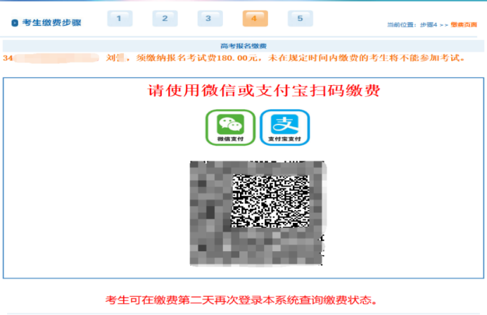 3.仔细核对考生信息并确认无误后😯,点击“缴费”按钮,进行缴费。考生缴费金额由系统自动根据考生是否参加分类、对口考试等条件自动计算,不同考生缴费金额可能不同。