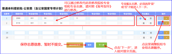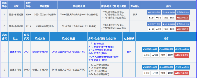 下面🙏🏽,我们来看志愿填报系统的使用方法🧑🏼🎓,在使用志愿填报系统之前,需要在志愿填报辅助系统中先预填好志愿,假设小王同学在志愿填报辅助系统中已经填了下面的志愿🕉🍶: