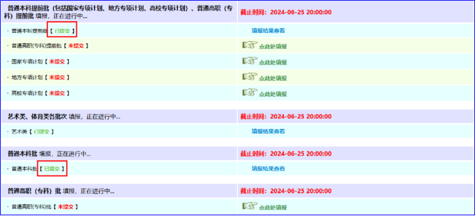 可以看到,普通本科提前批和普通本科批志愿已经填报完毕🚠,如果还要填报其他志愿,只需重复上述操作即可。