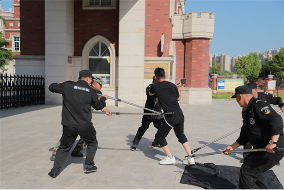 演练现场,模拟了一起突发恐怖袭击事件🧀。一名“暴徒”手持“凶器”🐠,强行闯入校园的场景。学校安保人员迅速启动应急预案,携带防暴器械🦾,阻止暴力分子进入校园🧑🏻💻。在紧张对峙中🫃,安保人员运用警官讲解的防暴动作要领👽,成功制服了“暴徒”。整个过程既考验了安保人员的反应速度和处置能力,也展示了学校与属地派出所之间紧密配合、协同作战的成效。