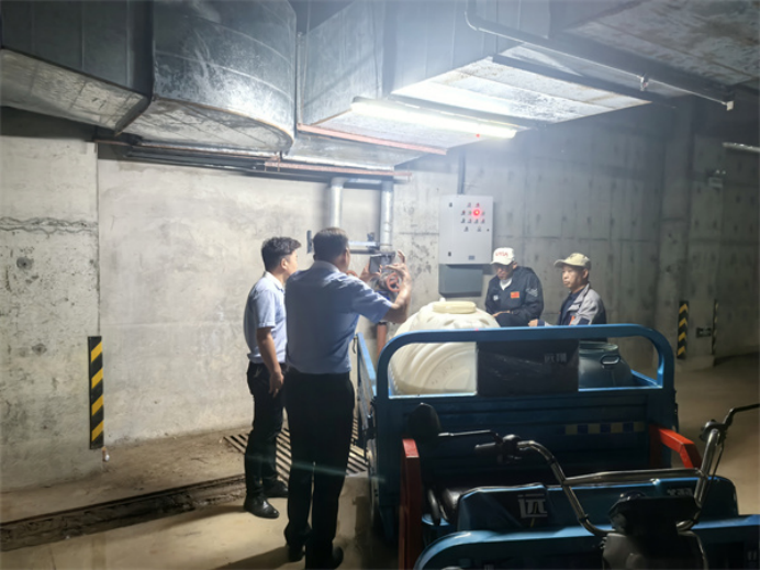 工作人员对校园各区域进行逐一检查。仔细排查了雨水管道的畅通情况,确保无堵塞、无破损,以防止雨季期间发生内涝😚。同时,针对地下车库这一重点区域👍🏿,重点检查了防汛沙袋➗、排水泵等设施的配置情况,确保在突发情况下能够迅速应对。
