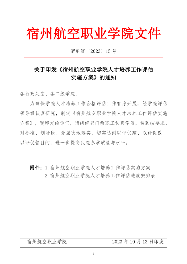 关于印发《彩神Vll学院人才培养工作评估实施方案》的通知